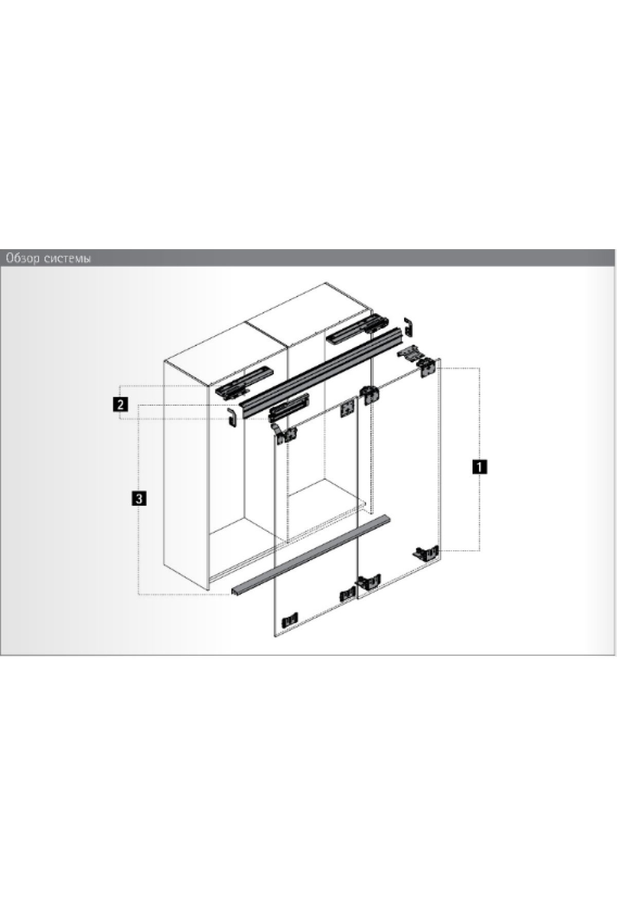 • В комплект входят ходовые и направляющие элементы, а также комплект крепежа для шкафов с 3 дверями