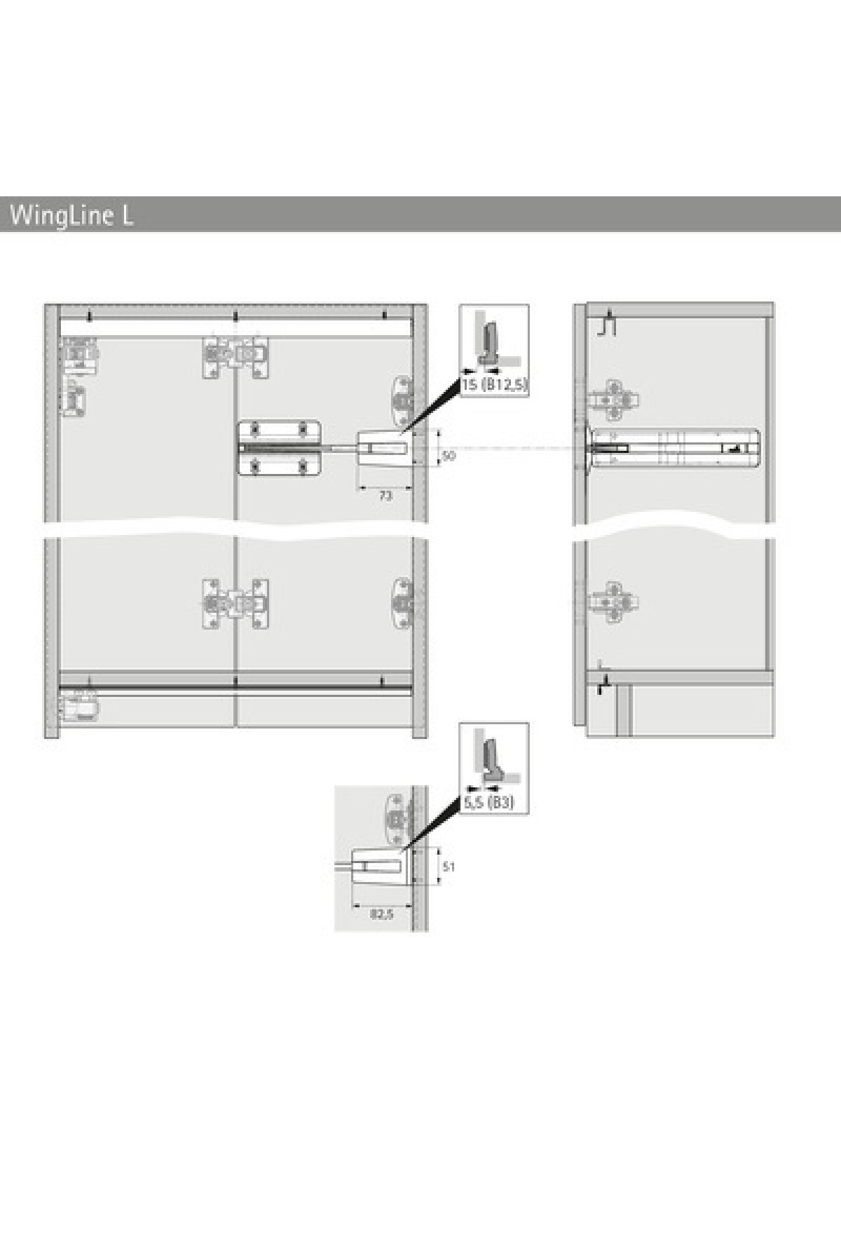 применяется только с комлектами фурнитуры и петлями боковой навески без функции самозакрывания, исключение WL230 + незначительные изменения карты сверления