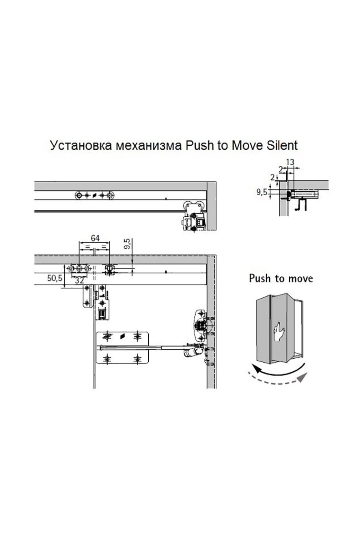 В сочетании с Push to move используются корпусные петли без функции самозакрываания. Рекомендуется петля арт. 37702