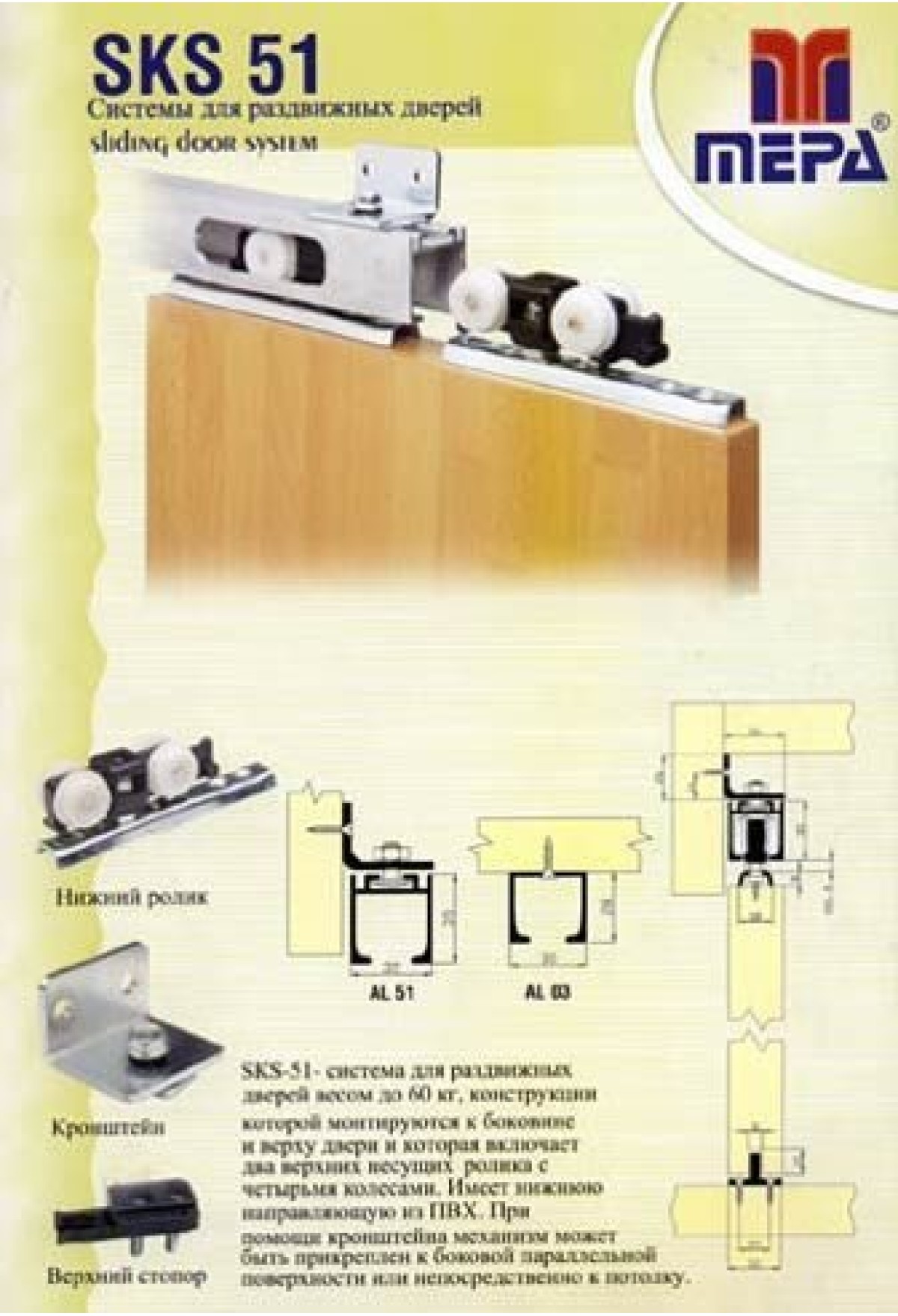 Раздвижная система для межкомнатных дверей SKS 51 турецкой фирмы МЕРА предназначена для дверей весом до 60 кг.