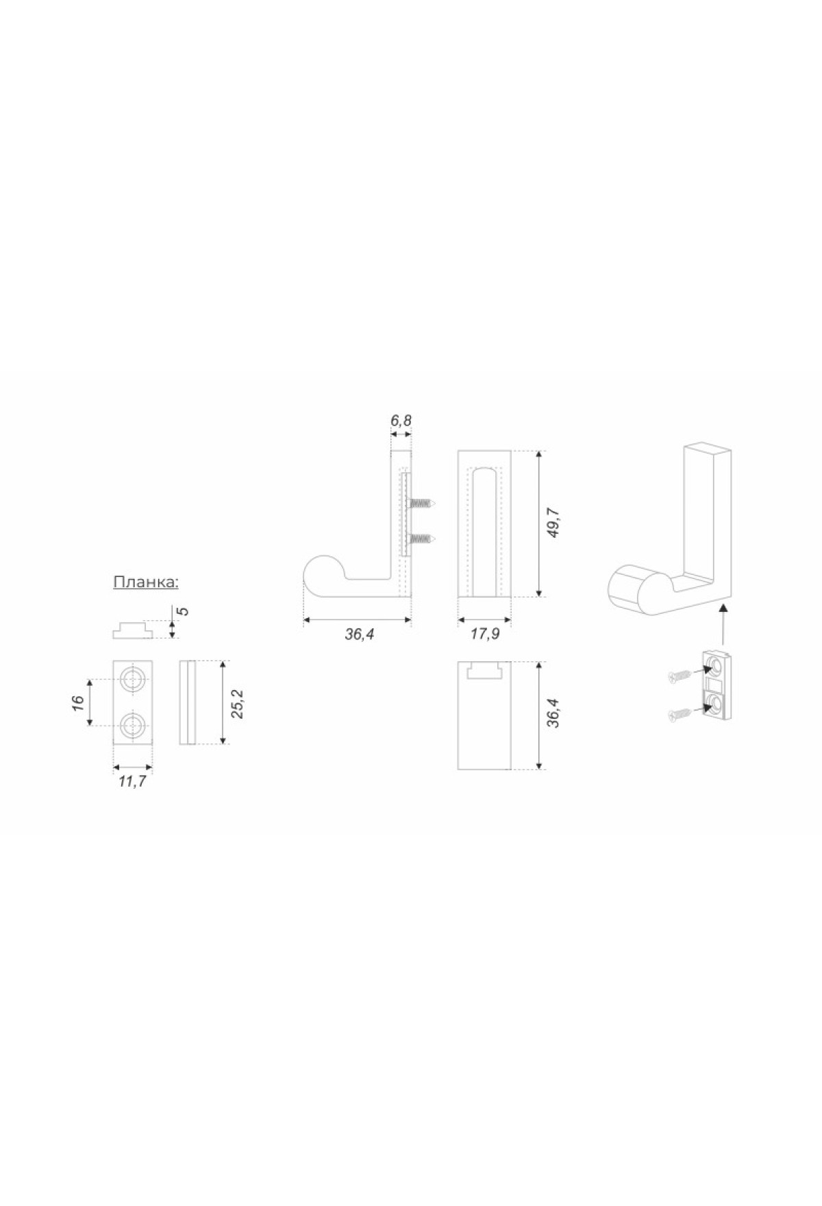 LUNO K109 — L-образный однорожковый крючок скрытого монтажа из алюминия с оригинальным утолщением в зоне навешивания для надежного размещения вещей.