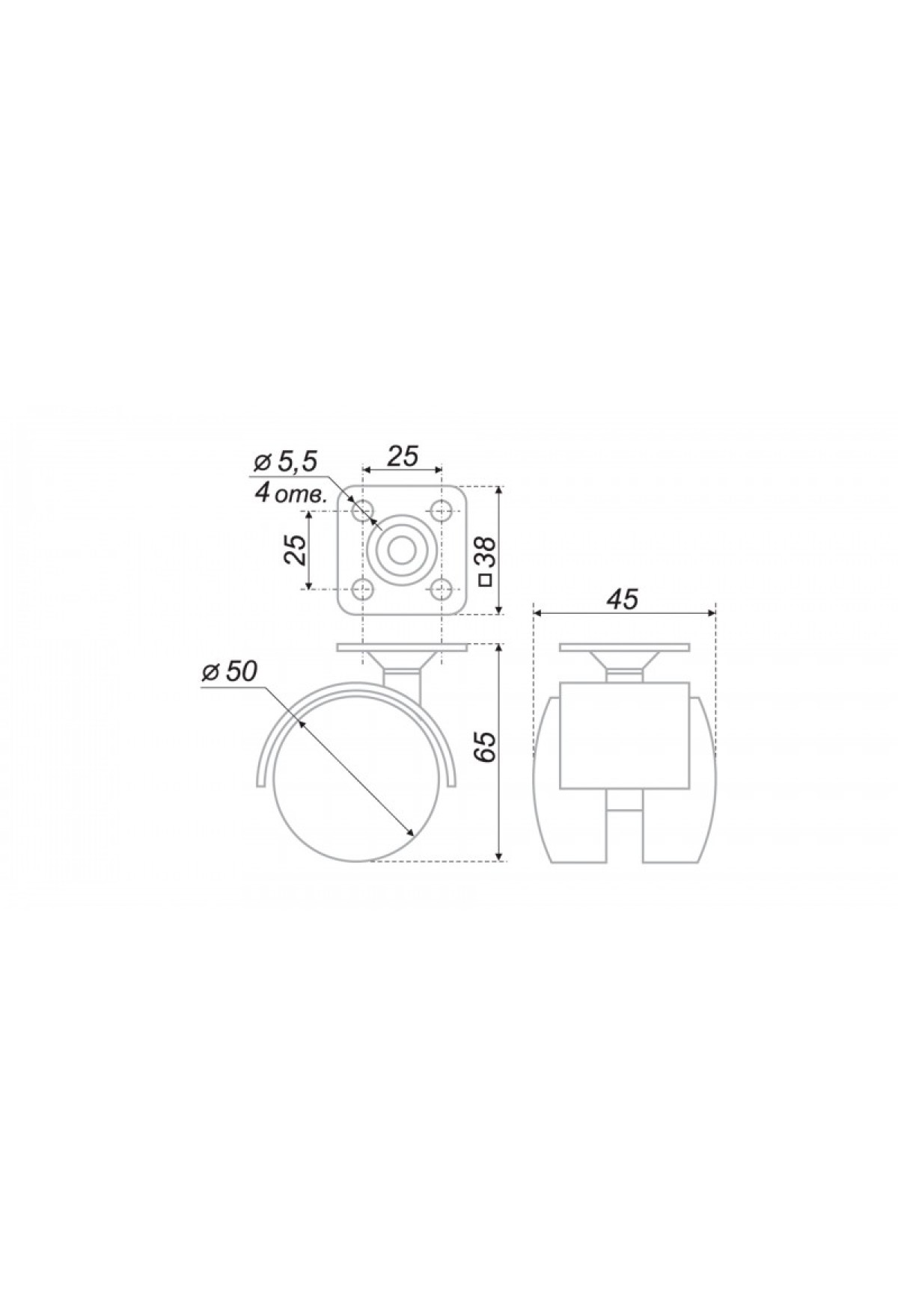 N102 - колесо мебельное d=50мм, без тормоза, поворотное, с металлической площадкой для крепления.