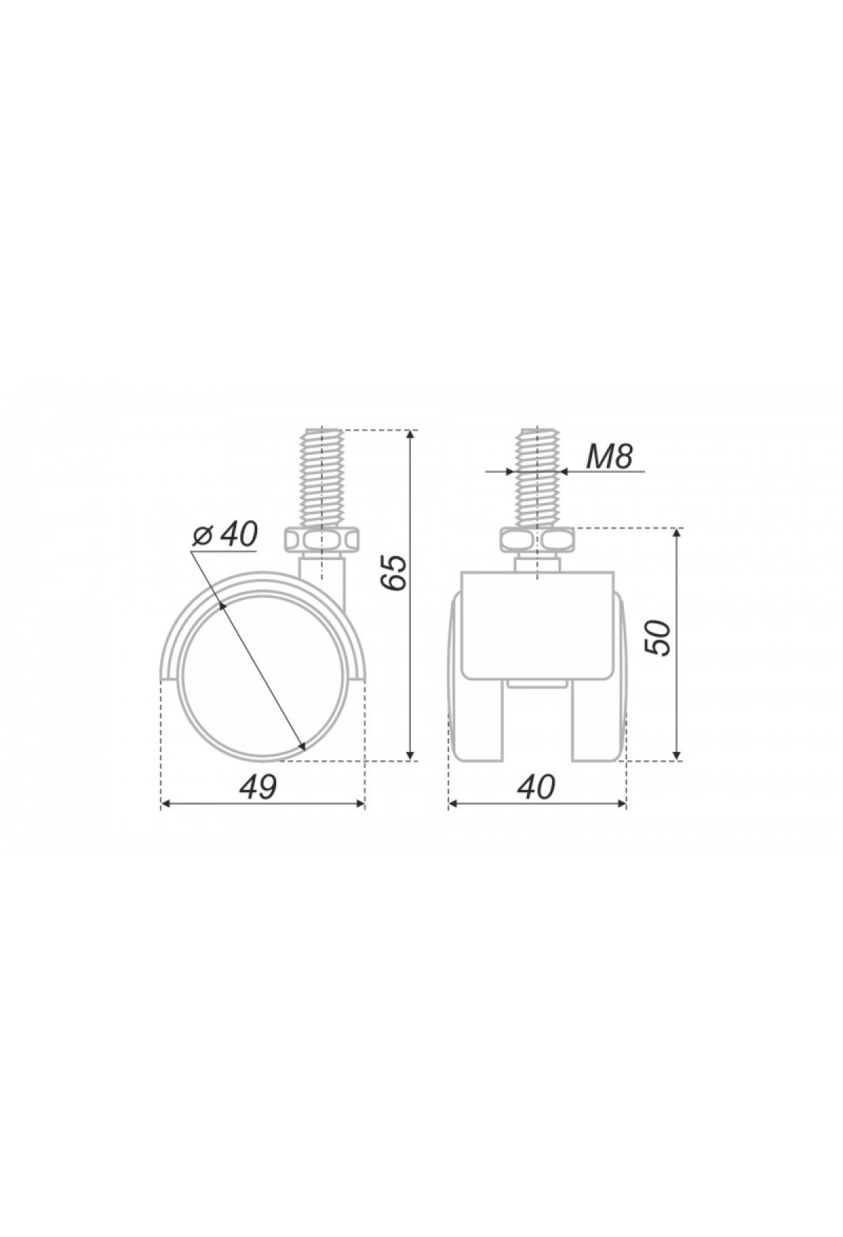 Колесо мебельное d=40мм, без тормоза, поворотное, с резьбовым штифтом M8*15.