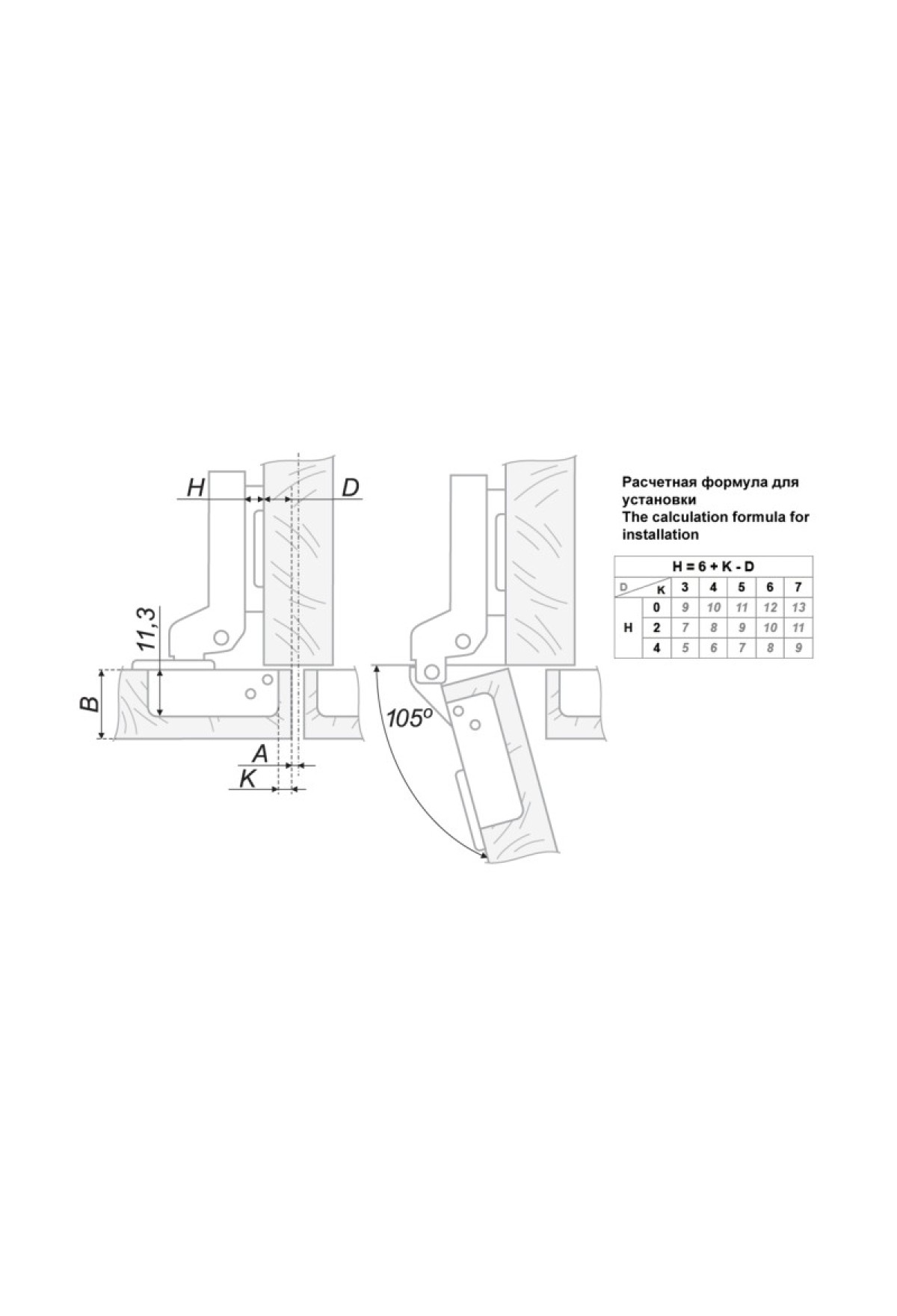 Способ монтажа петли | Под евровинт и саморез, с d отверстий 5,5 мм |