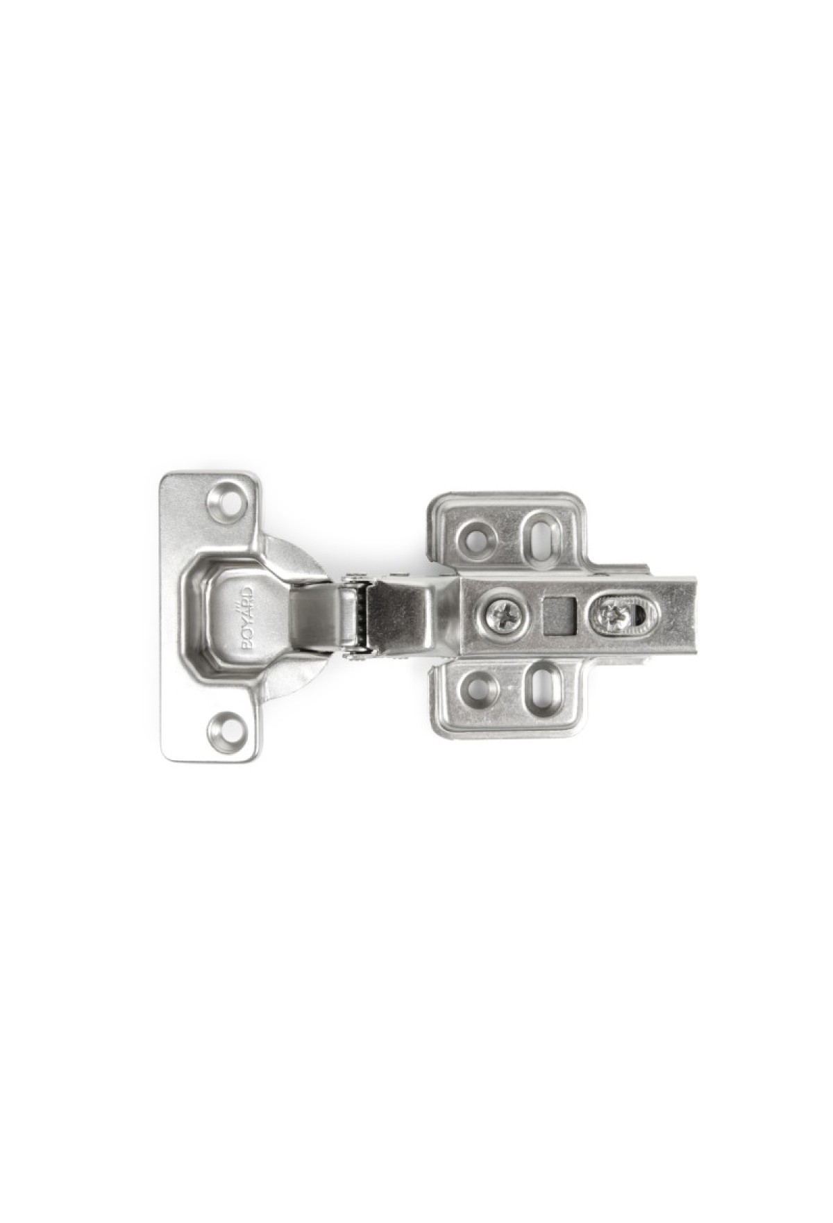 H302 – это четырехшарнирная цельнометаллическая вкладная петля системы Clip-on с амортизатором и уголом открывания 110°.