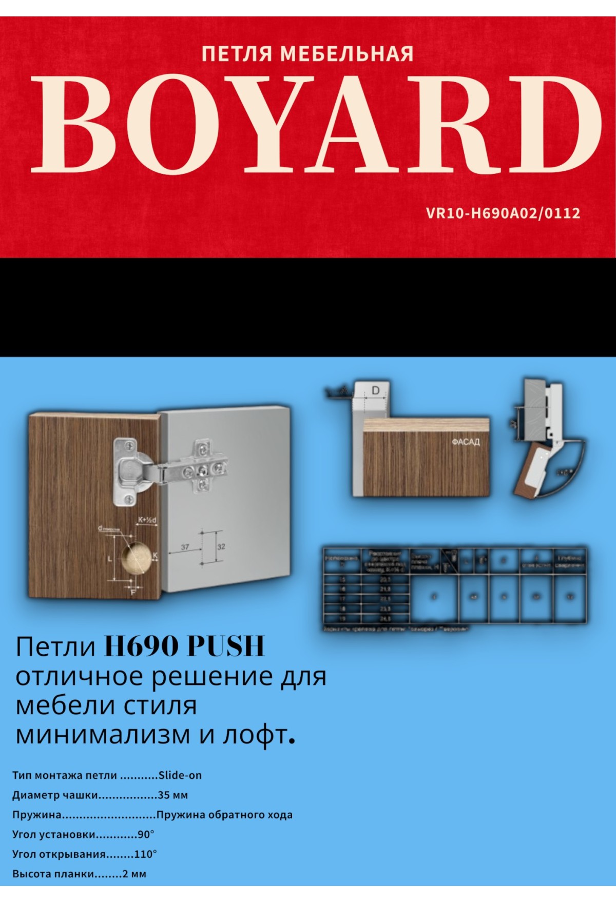 Петли H690 PUSH отличное решение для мебели стиля минимализм и лофт.