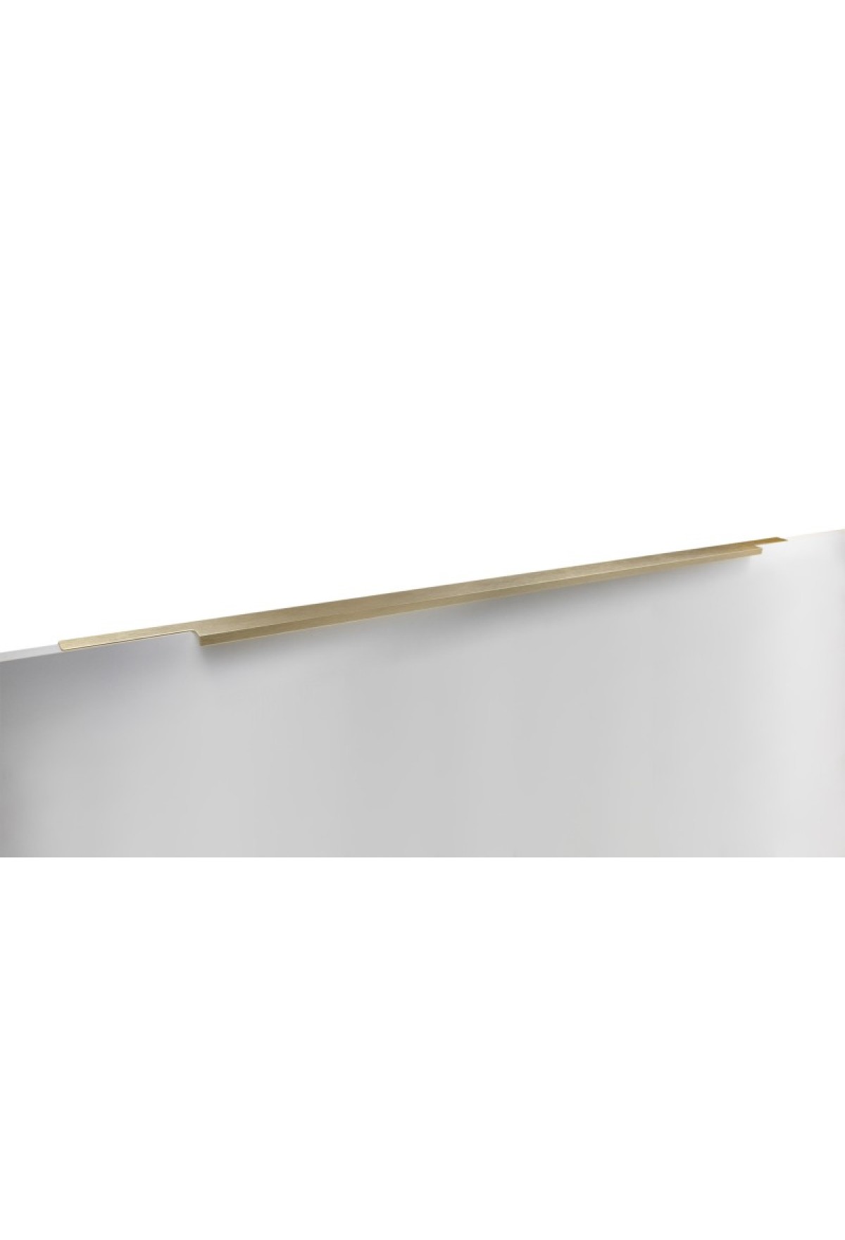 Ручка имеет богатую палитру цветовых решений и разнообразие длин. В зависимости от длины, модель допускает размещение двумя способами — «в размер» фасада и по центру широких фасадов (как большой «язычок»).