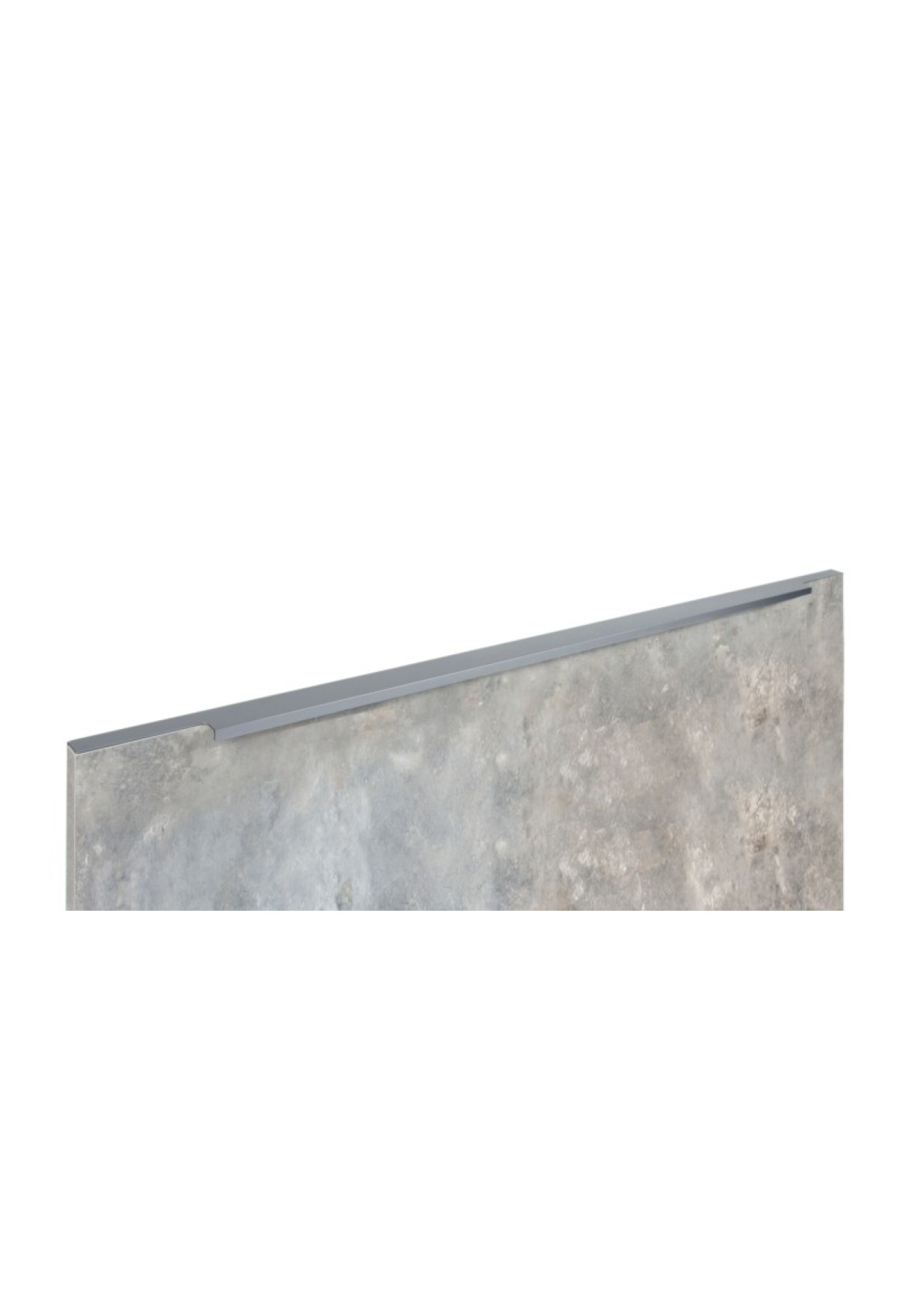 Ручка имеет богатую палитру цветовых решений и разнообразие длин. В зависимости от длины, модель допускает размещение двумя способами — «в размер» фасада и по центру широких фасадов (как большой «язычок»).