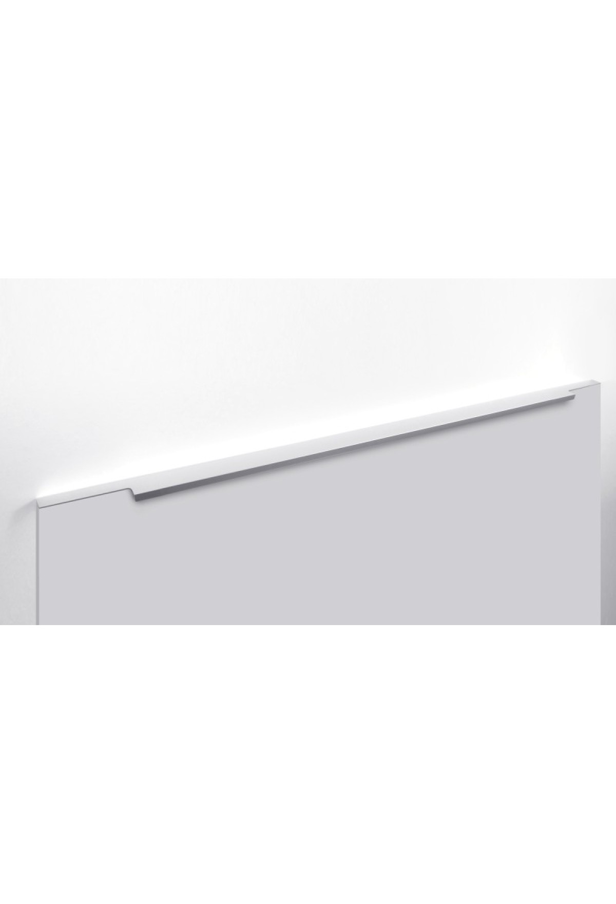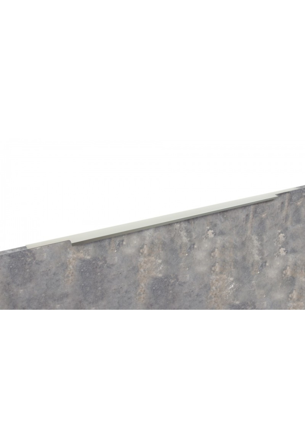 Ручка имеет богатую палитру цветовых решений и разнообразие длин. В зависимости от длины, модель допускает размещение двумя способами — «в размер» фасада и по центру широких фасадов (как большой «язычок»).