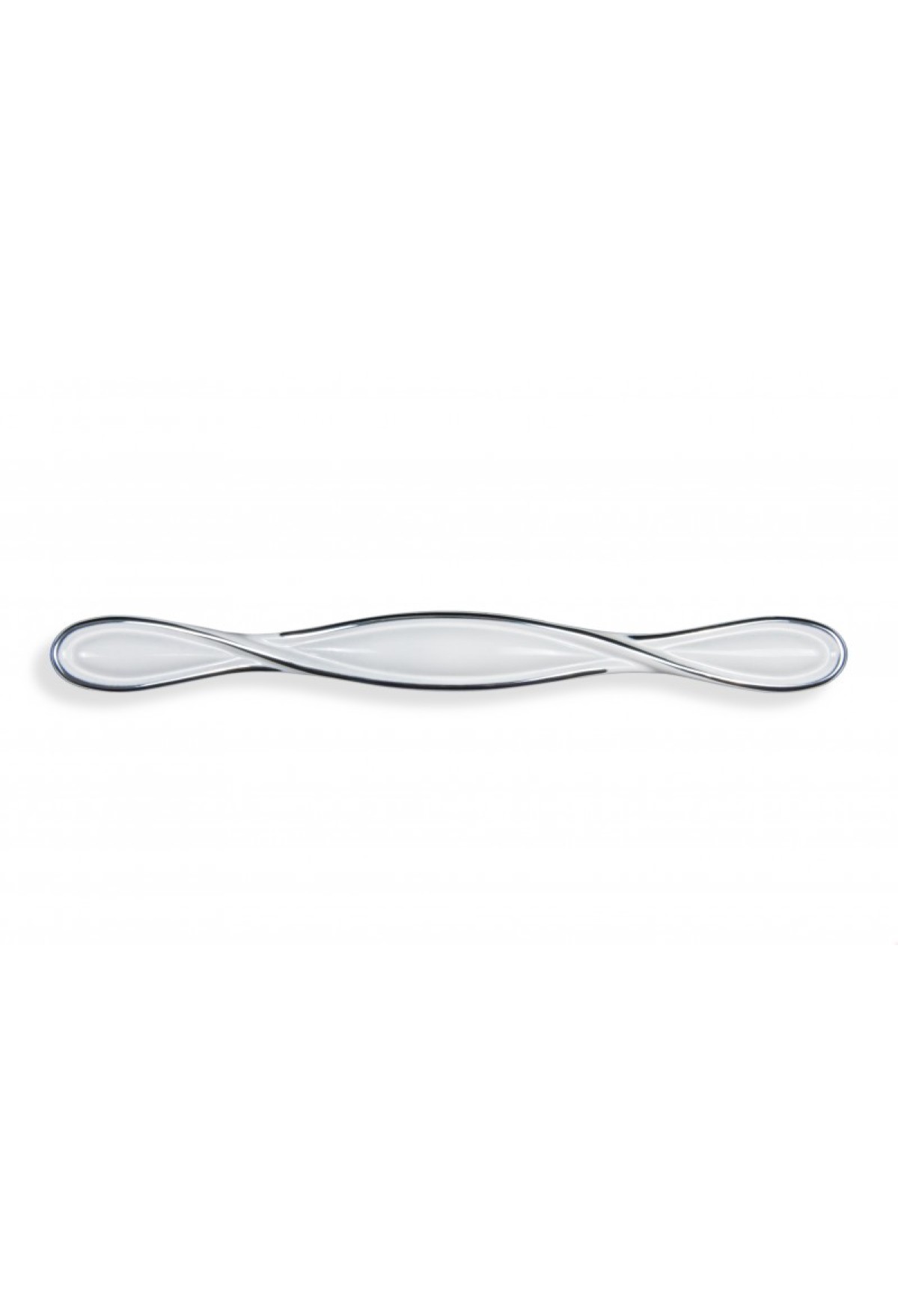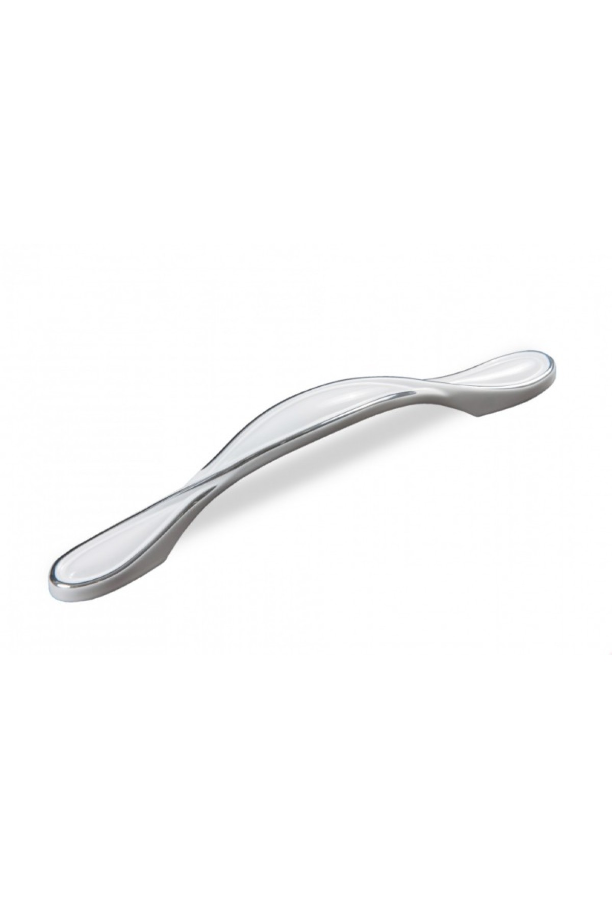 Плавный незамысловатый дизайн сдержанной и изысканной ручки напоминает скрученную нить воздушного шёлка. Ручка представлена в трендовом покрытии – белой эмали с хромированным серебряным кантом, она внесёт свежую нотку в дизайн интерьера, будет гармонично сочетаться с фасадами древесной фактуры тёплых и холодных оттенков, глянцевыми или фасадами с патиной.
