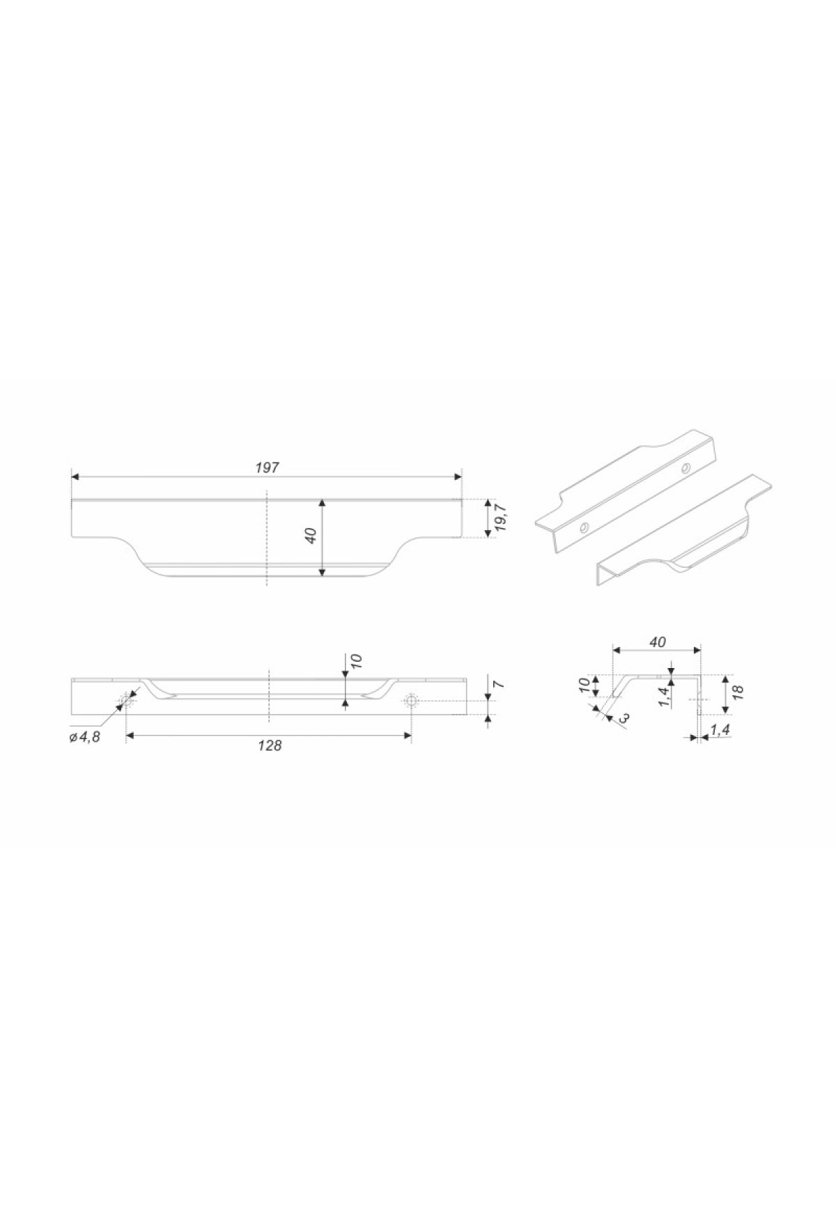 Модель крепится на фасад наложением и фиксируется при помощи саморезов. Саморезы не входят в комплект и приобретаются отдельно. Размер саморезов необходимо подобрать самостоятельно, исходя из толщины фасада, на который будет устанавливаться ручка. Рекомендуем использовать для установки саморезы с потайной головкой 4 х 16 с диаметром шляпки 7мм. Все габаритные размеры, расположение крепежных отверстий и их количество смотрите в схеме в карточке продукта.