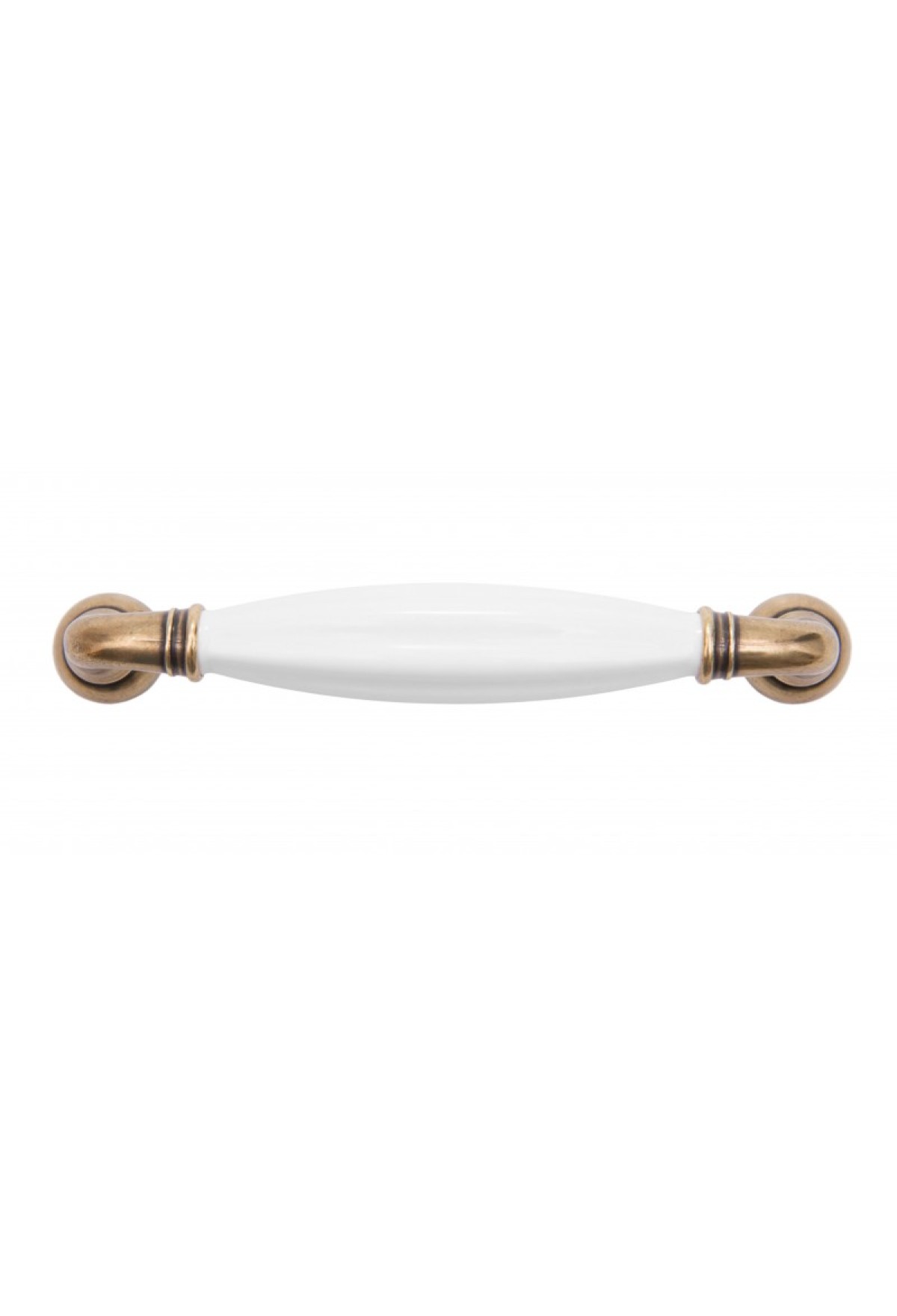 Нежная ручка TIFFANY символизирует чистоту и легкость. Белоснежная керамика в сочетании с металлом в покрытии «Старинная латунь» будет гармонично смотреться на фактурных и гладких фасадах теплых, натуральных оттенков. Ручка идеально встанет на мебель из массива дерева в неоклассическом и романтическом стилях. Приятная на ощупь, благородная керамика, эргономичная форма ручки-скобы с плавными линиями делают модель удобной в ежедневном использовании.