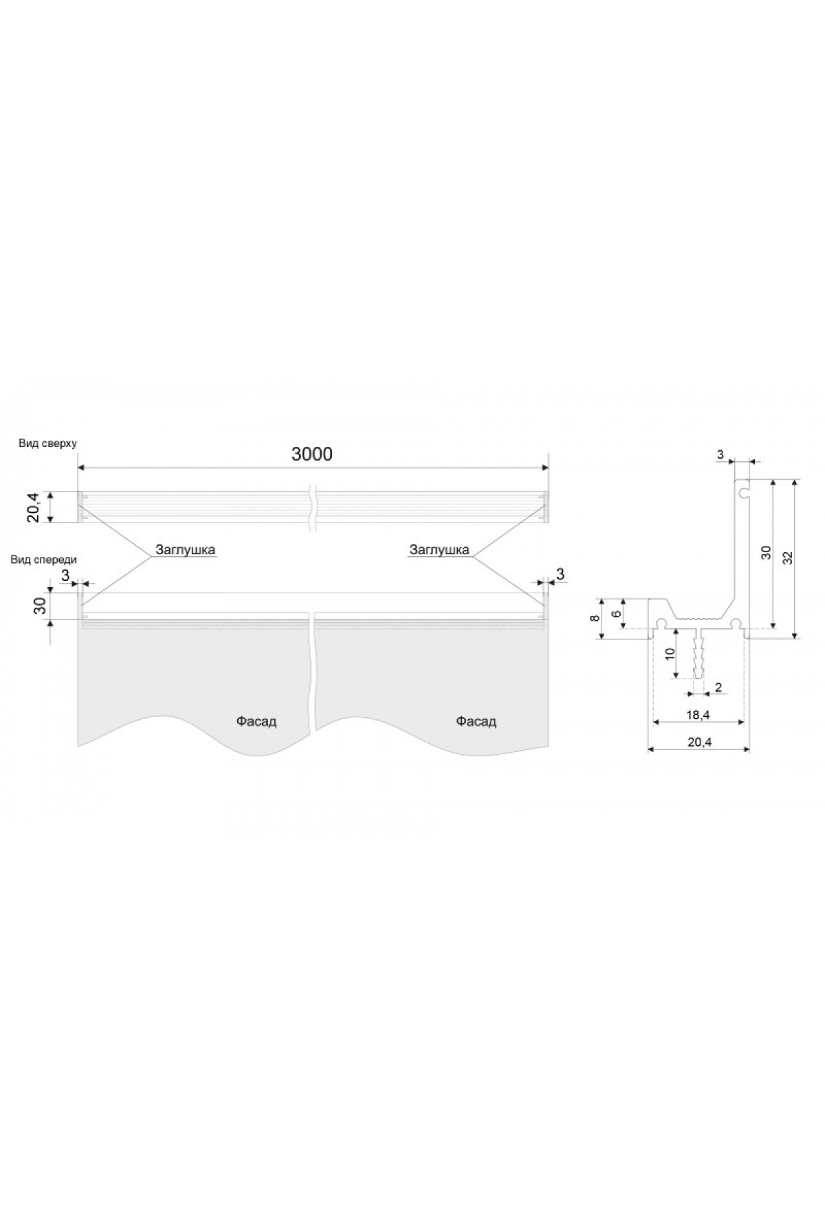 Для того чтобы профильная ручка совместно с заглушками не выходила за плоскость фасада справа и слева необходимо при расчёте длины ручки учесть место под заглушки — 3 мм с каждой стороны. В противном случае заглушки будут выступать с обеих сторон от кромки фасада на 3 мм.