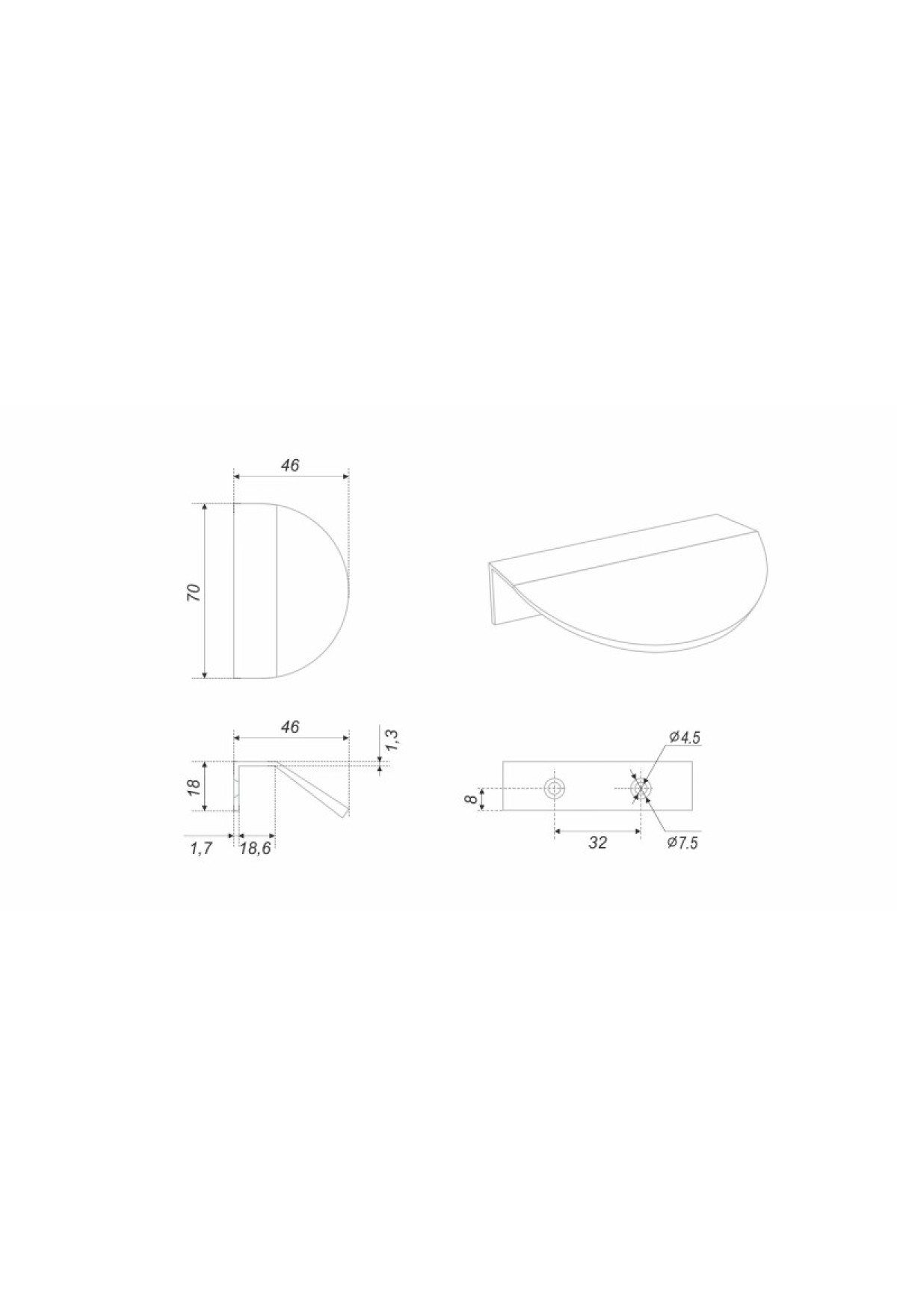 VIVA RT012 — торцевая ручка из алюминия, с геометричным выступом в форме полукруга. Для удобства захвата на ручках увеличен отступ язычка, а на его внутренней стороне предусмотрено рифление. Устанавливается наложением, подходит для фасадов толщиной до 18 мм.