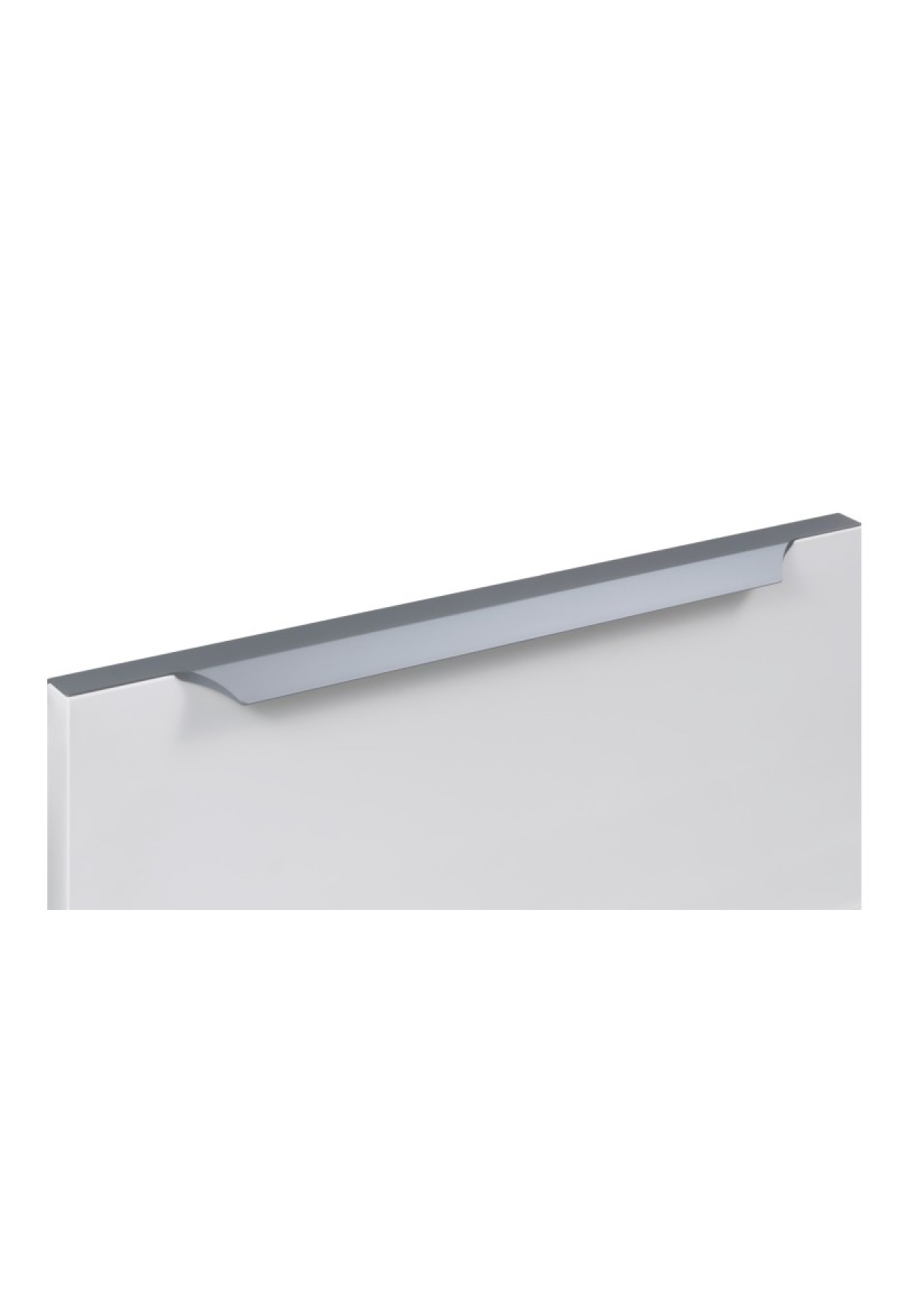 WING RT114 — торцевая ручка с изгибом из алюминия, устанавливается наложением на фасады толщиной 18,8 мм (в цветах BL,GR,SC,SG) и 18,5 мм (в цвете W).
