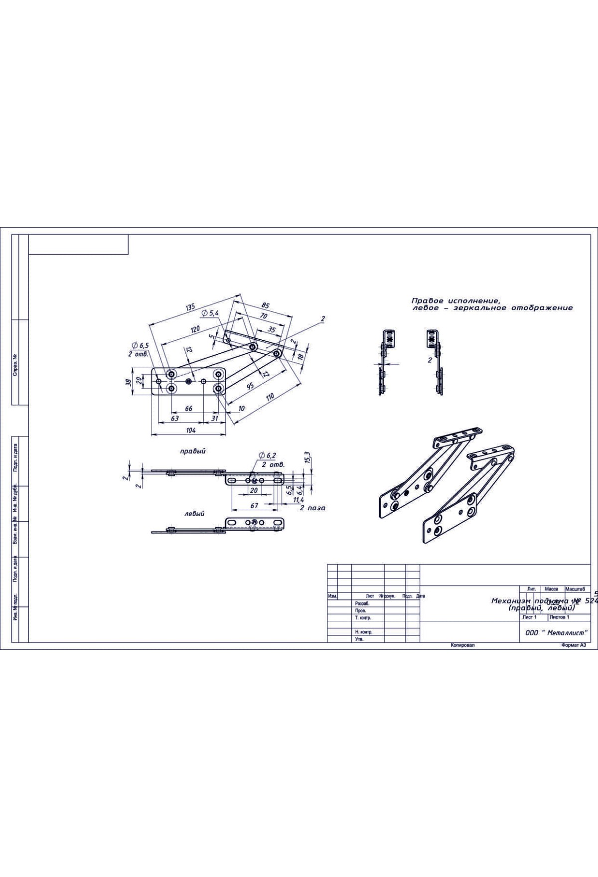 Механизм подъема №524 (микролифт) левый/правый с доставкой в интернет-магазине завода «Металлист». Качественная продукция. Выгодные цены. Продукция от производителя. 10 шт. в коробке