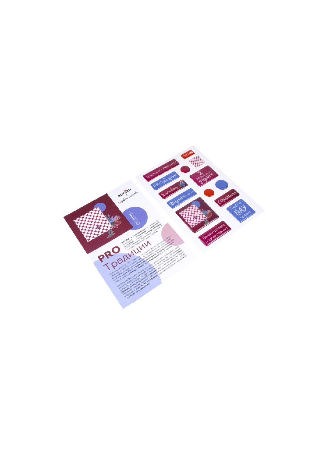 3D-стикерпак BOYARD S509 – набор наклеек с принтом PRO Традиции, созданным в коллаборации с современной петербургской художницей Елизаветой Пугачёвой.