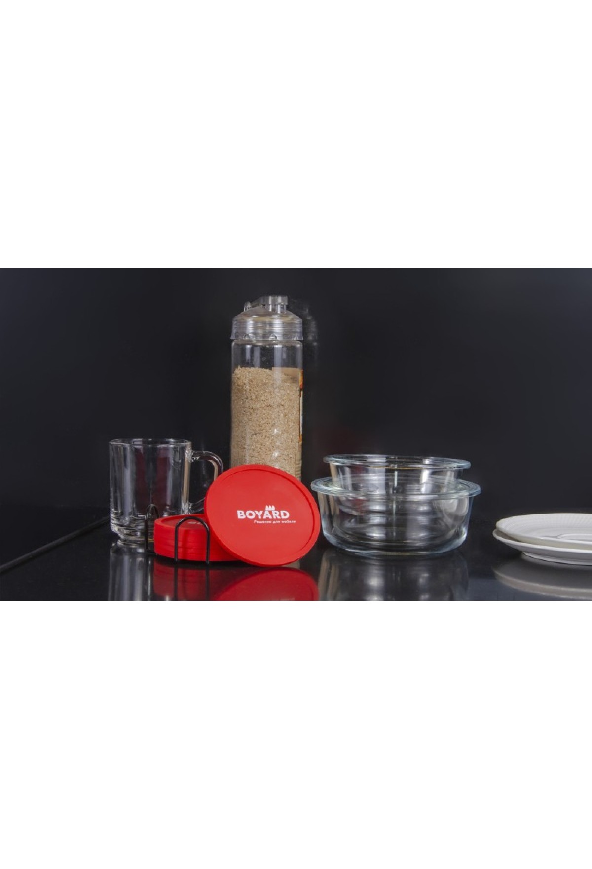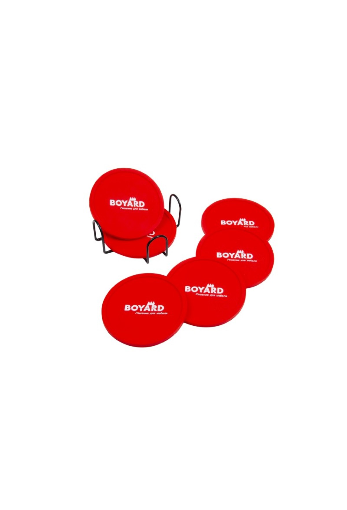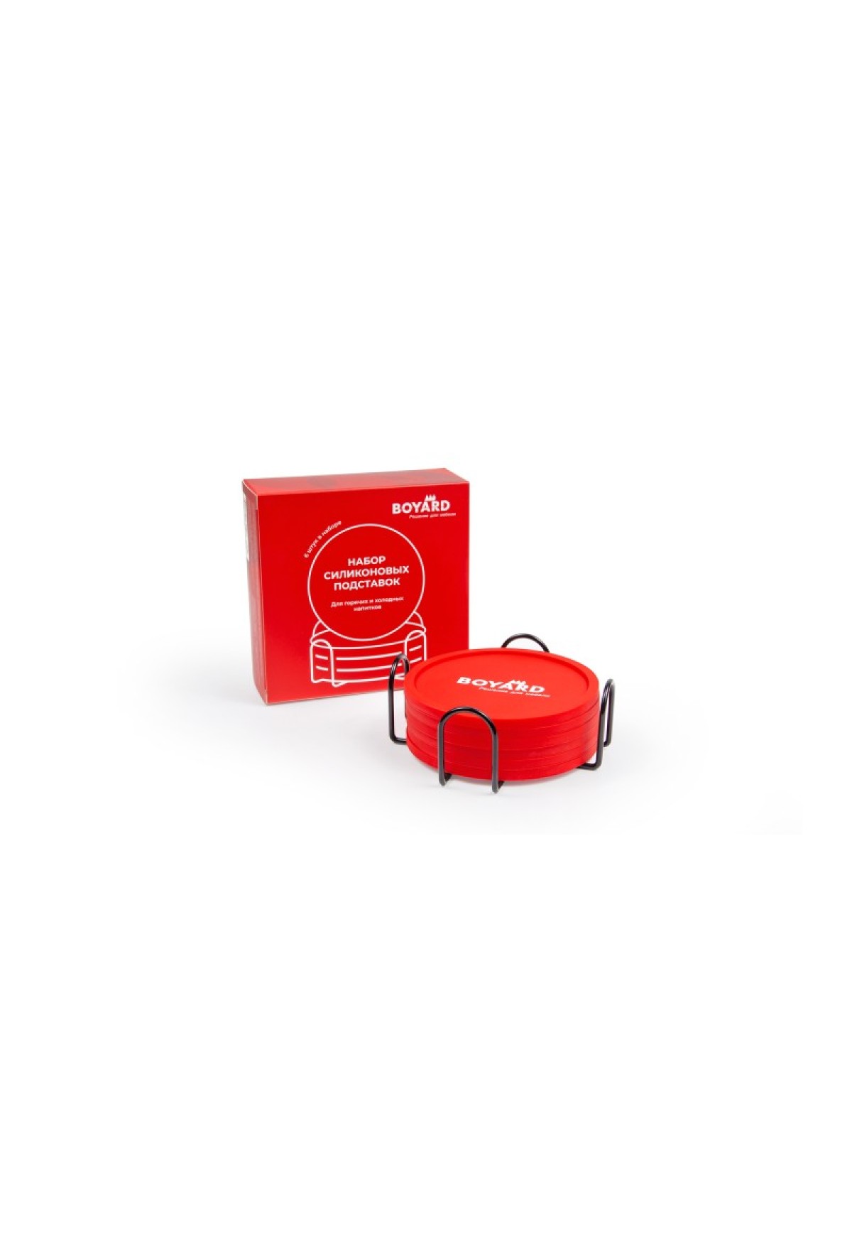 В набор входит 6 подставок в стильном фирменном дизайне BOYARD, а для аккуратного хранения предусмотрен стальной держатель в комплекте.