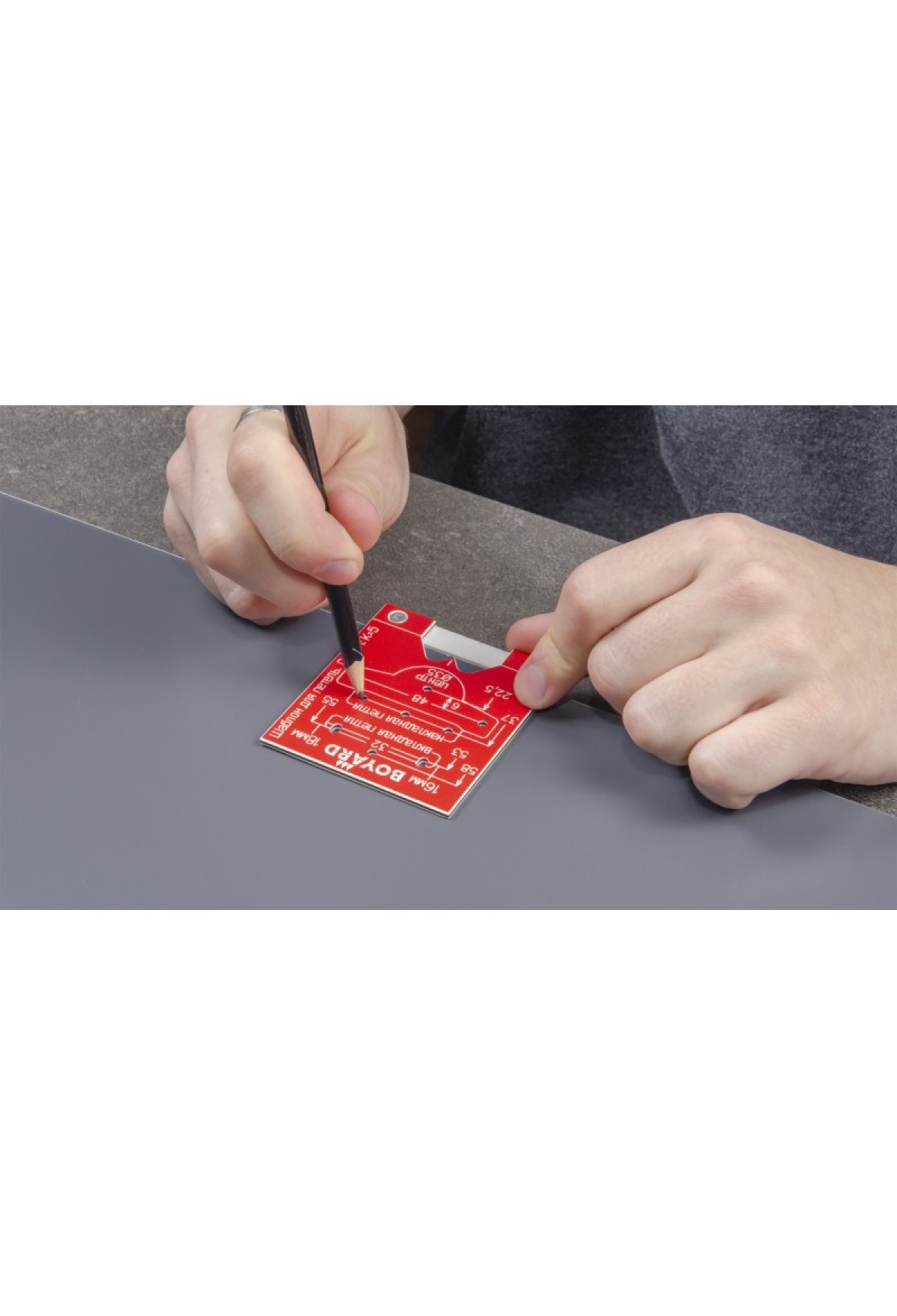 S908 — разметочный шаблон для петель с расстоянием до центра сверления под чашку K=5. Позволяет выполнять точную разметку отверстий для установки фурнитуры, что значительно упрощает последующий монтаж. Может использоваться как в индивидуальном, так и в серийном производстве мебели.