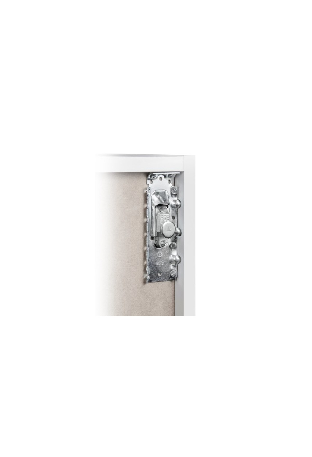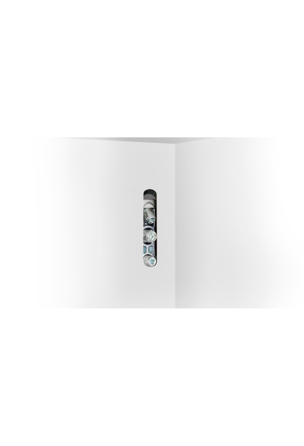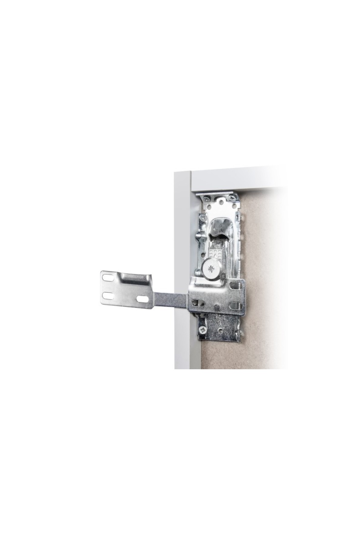 Стальной навес врезного монтажа со специальной монтажной планкой. Навес монтируется в боковые стенки короба со стороны задней стенки и, благодаря заглушкам, практически незаметен для пользователя. Фиксирующий винт прочно закрепляет навес на стальной монтажной планке и гарантирует сохранность конструкции даже при сильном воздействии на модуль снизу. Дополнительное крепление саморезами, установленными под углом, исключает вырывание навеса из короба при сильном горизонтальном воздействии. Технические детали навеса закрыты для пользователя пластиковыми заглушками.