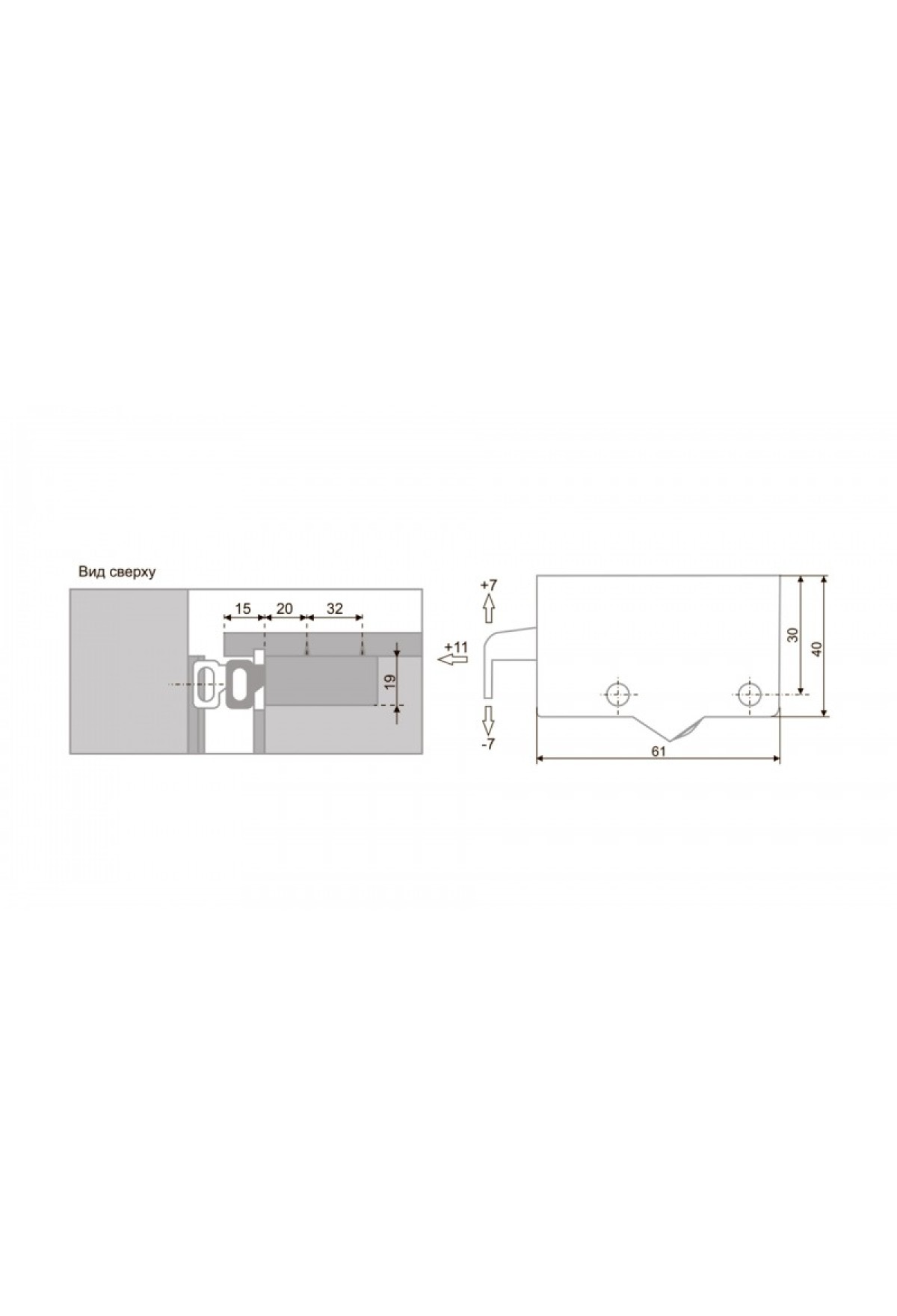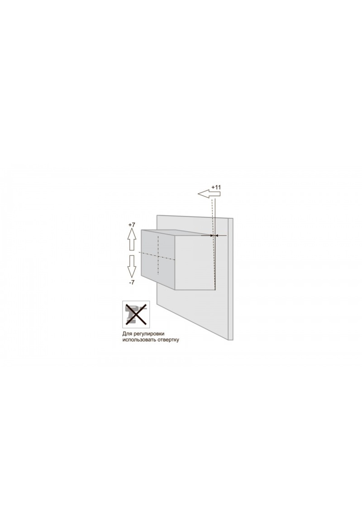 Модель позволяет отрегулировать смещение мебельного корпуса по вертикали +/- 7 мм, и по горизонтали от плоскости стены + 11 мм.