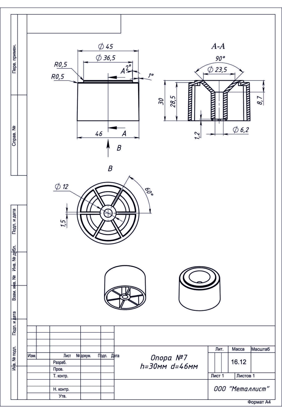 ОПОРА №7 h=30 мм d=46 мм (250 шт.) от 2.8 руб с доставкой в интернет-магазине завода «Металлист». Качественная продукция. Выгодные цены. Продукция от производителя. 250 шт. в коробке