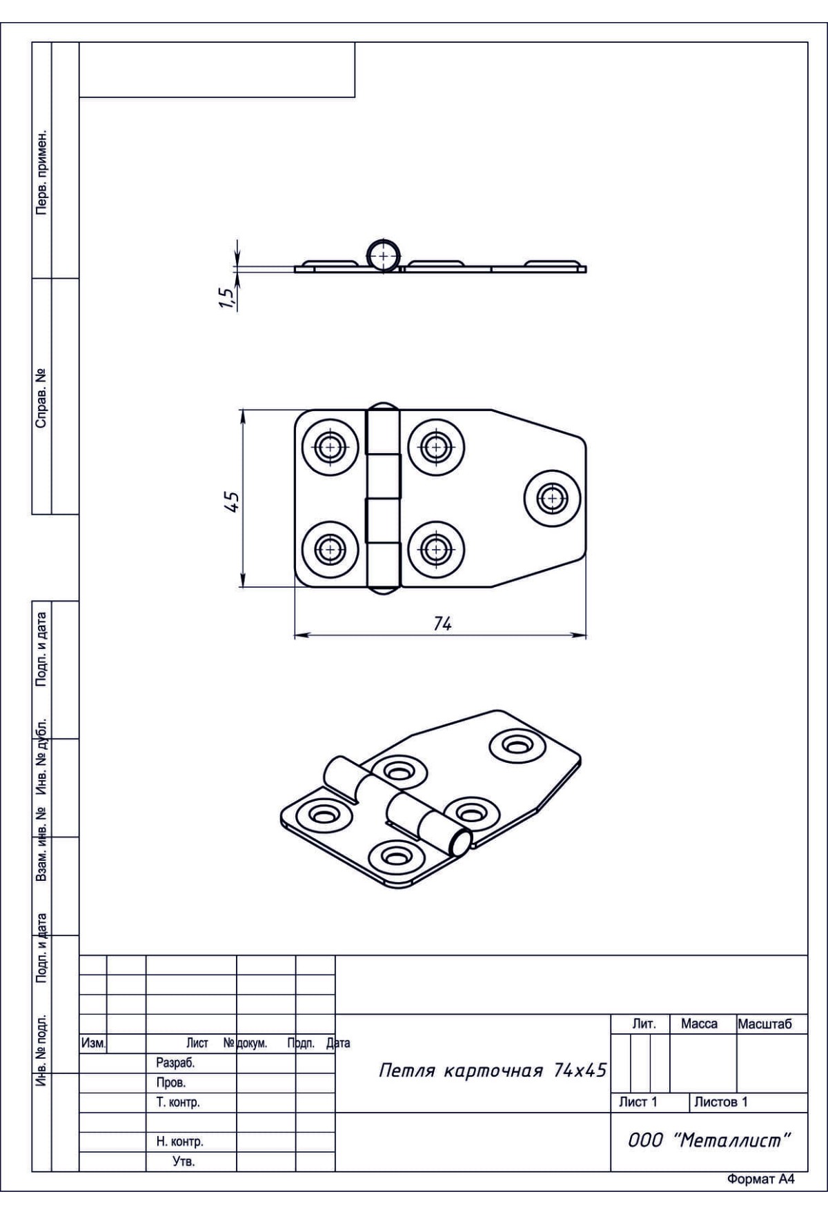 Петля Карточная 74*45 (150 Шт.) Цинк