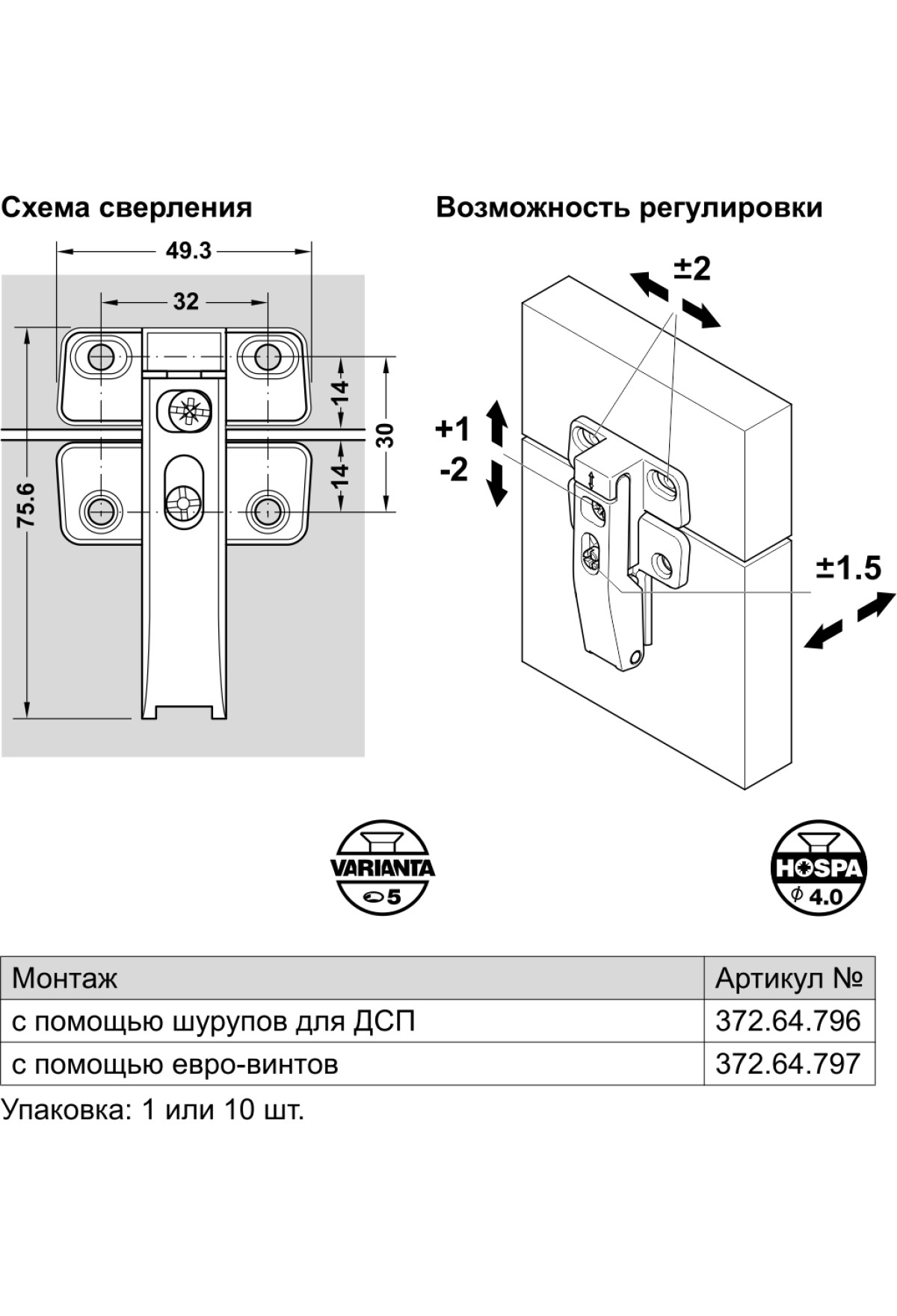 Технические характеристики Петля мебельная центральная для складных дверей при установке подъемных механизмов Free Fold 372.64.796 Hafele