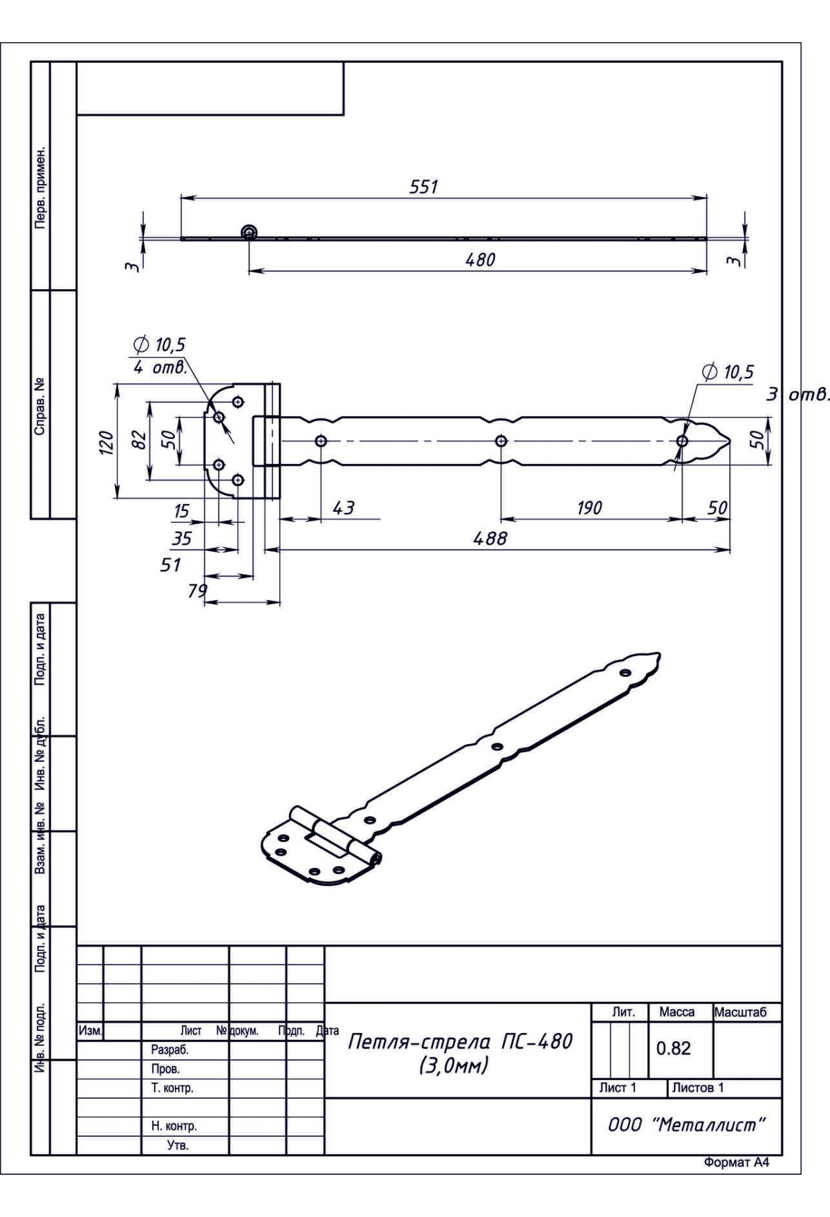 Петля-Стрела Пс-480 (3Мм) (10 Шт.) Б/П