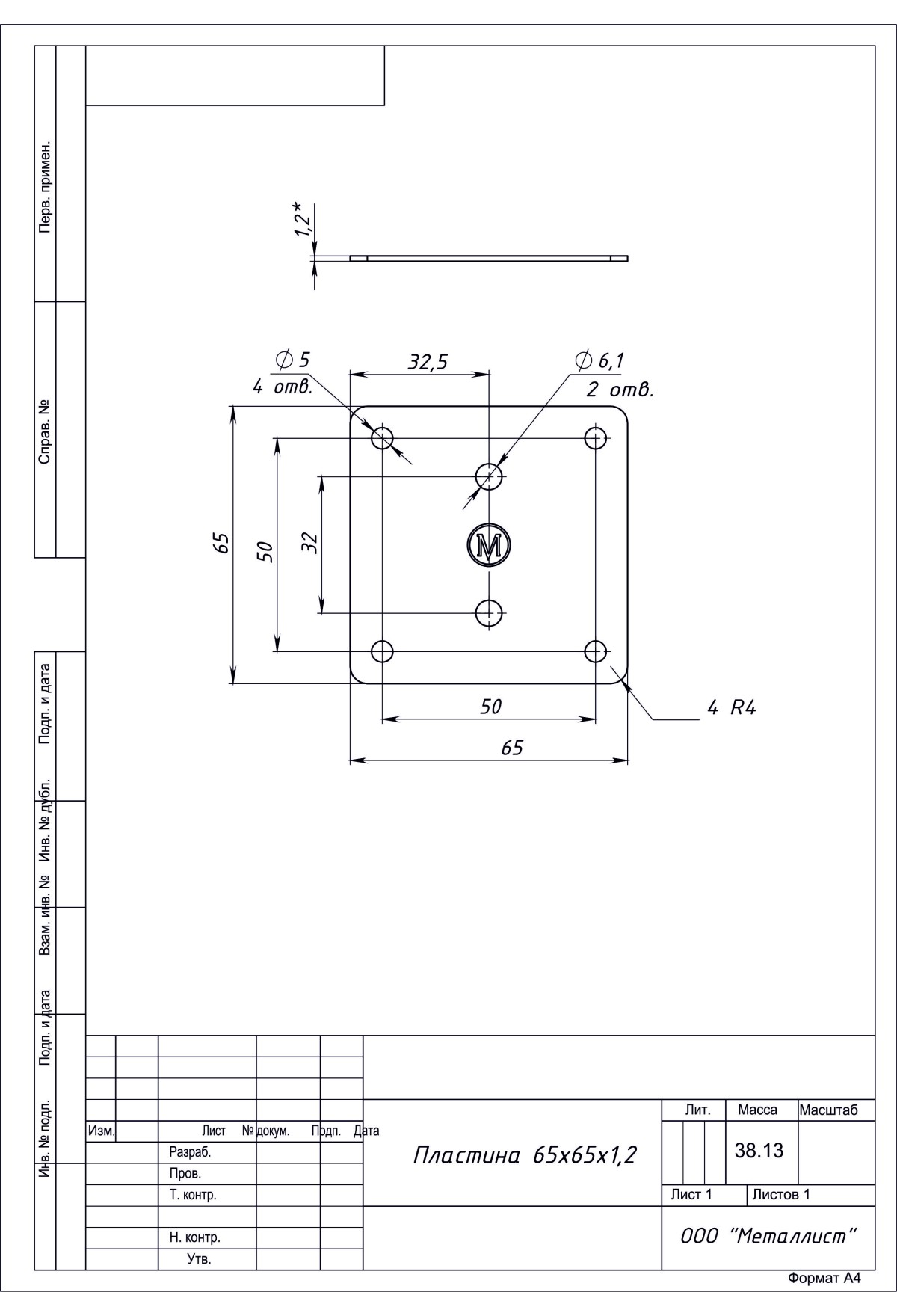 • Пластина 65*65*1,2 (150 Шт.) Цинк