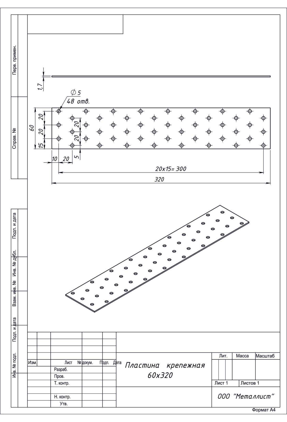 Пластина Крепёжная  60*320 (25 Шт.) Цинк