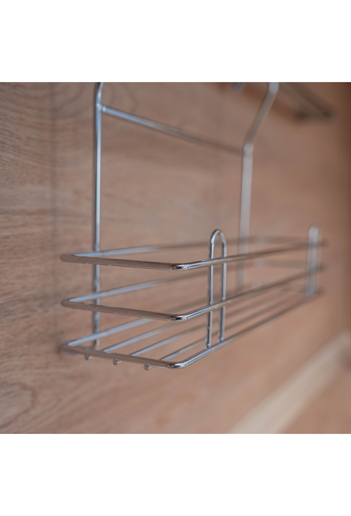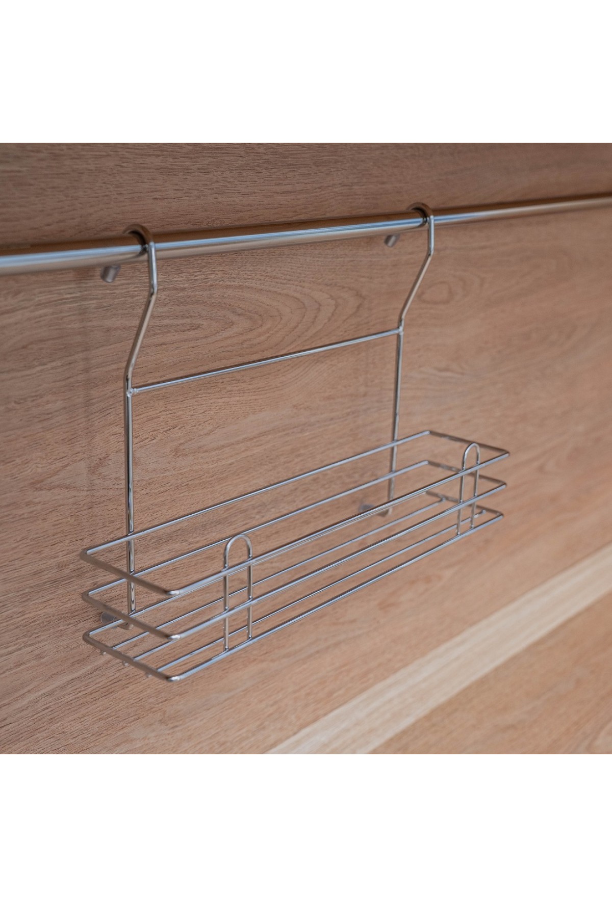 Полочка позволяет эффективно использовать пространство на стене, освобождая рабочую поверхность. Узкая полочка идеальна для соусов и специй. Изготовлена из стали, надежно крепится на трубу рейлинга, прослужит долго.