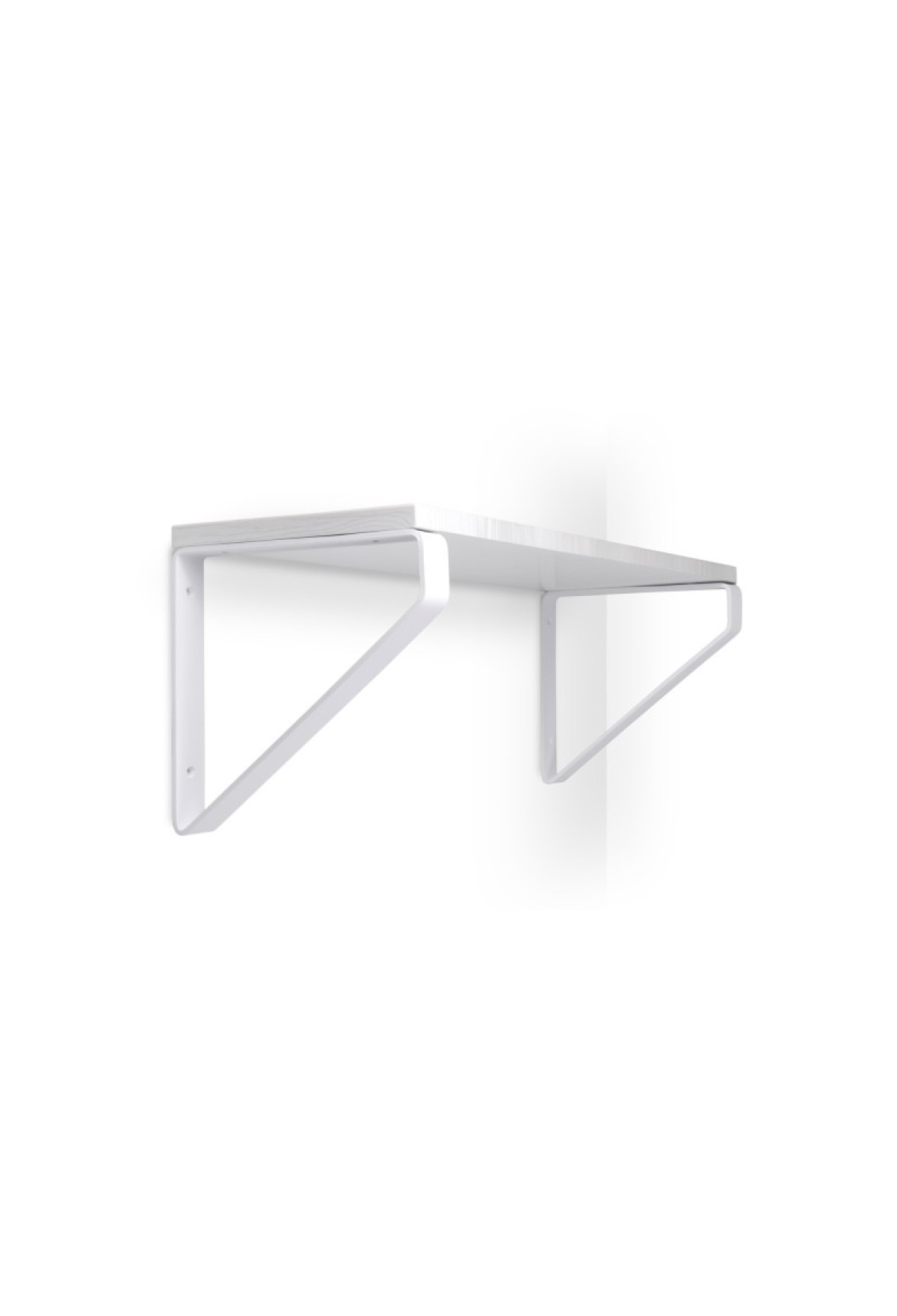 Лаконичная конструкция модели с простой и плавной геометрией позволяет установить полку по-разному: сверху над полкодержателем или внутри него (с учётом глубины полки не более 200 мм).