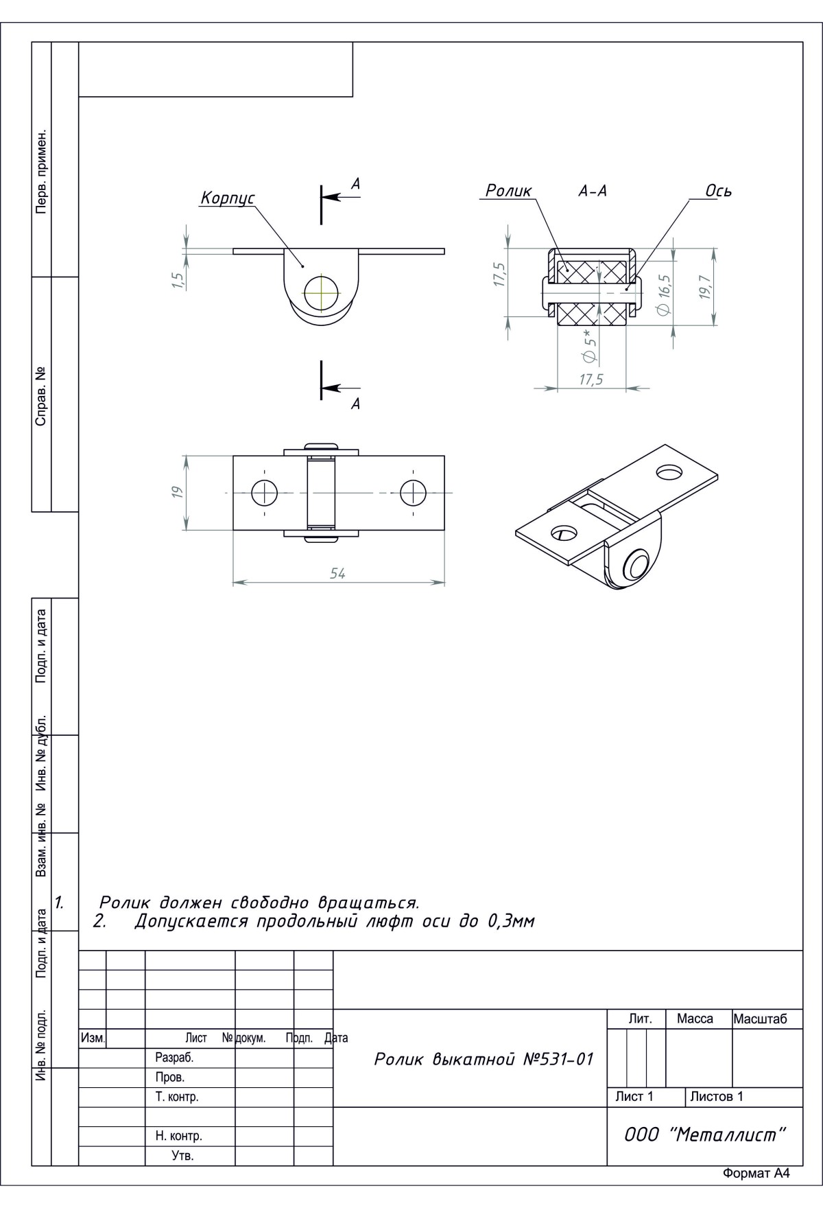 РОЛИК ВЫКАТНОЙ №531-01 (300 шт.) от 15.84 руб с доставкой в интернет-магазине завода «Металлист». Качественная продукция. Выгодные цены. Продукция от производителя. 300 шт. в коробке