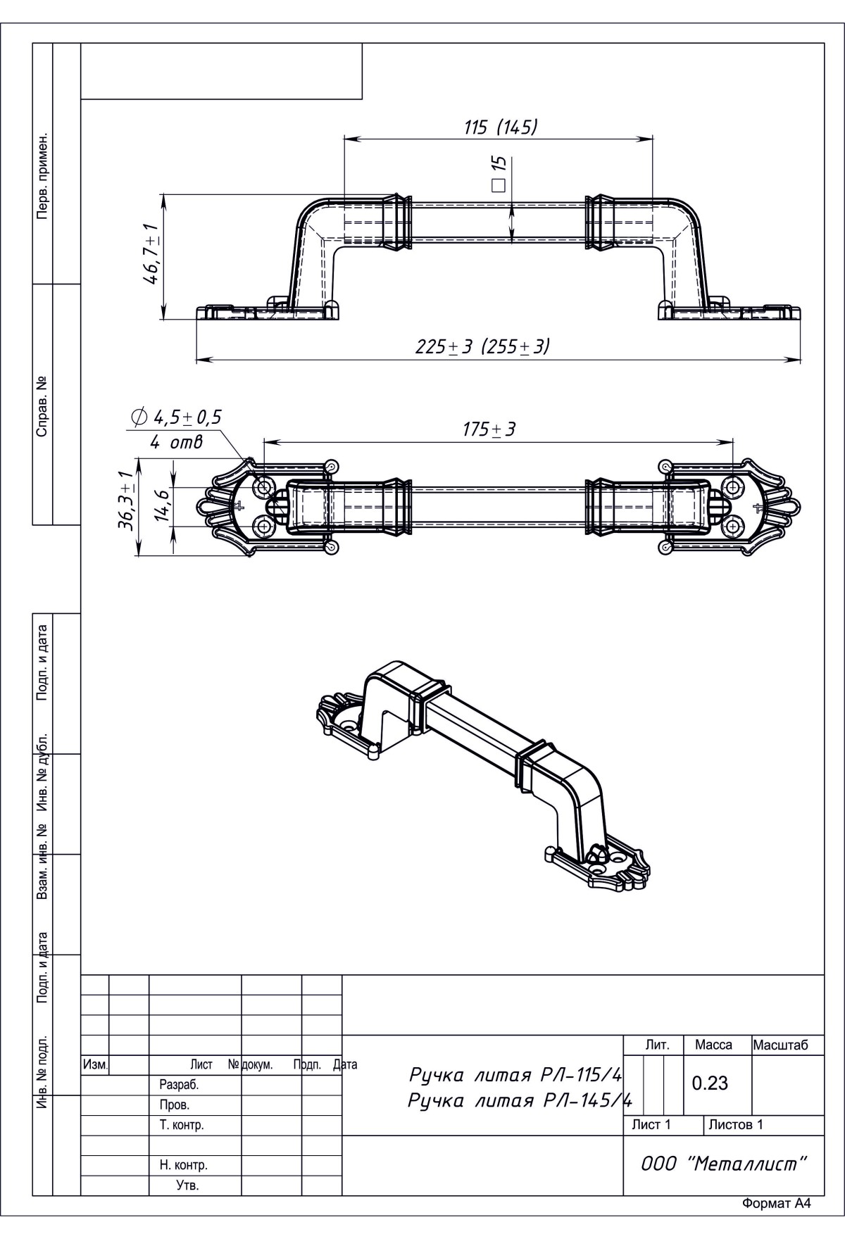 РУЧКА ЛИТАЯ РЛ-115/4 (10 шт.) от 165.5 руб с доставкой в интернет-магазине завода «Металлист». Качественная продукция. Выгодные цены. Продукция от производителя. 10 шт. в коробке