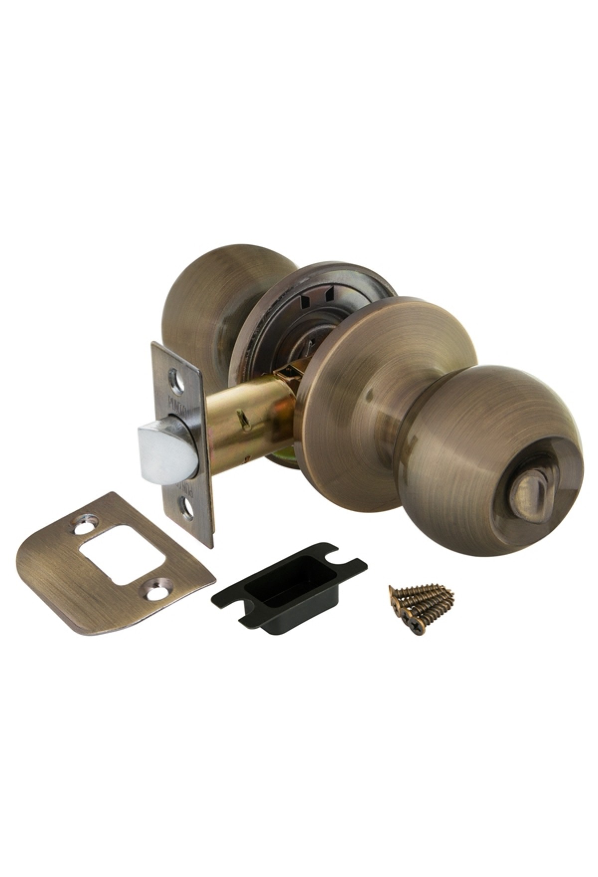 Комплект дверных ручек с защелкой (KNOB) Punto коллекции SIMPLE LIVING 6072 AB-B предназначен для установки в межкомнатные двери толщиной 35-45 мм. Подходит для дверей правого и левого открывания. Гальваническое покрытие прошло тест на устойчивость к коррозии в соляном тумане и соответствует 1 классу ГОСТ. Ресурс работы ручек-защелок более 150 000 циклов открывания/закрывания, что гарантирует безотказную работу двери более чем на 15 лет. Бэксет защелки регулируется - 60/70 мм. Материал изготовления: сталь. Модификация: фиксатор. Цвет: бронза. Комплектация: защелка, ответная планка с декоративной заглушкой, дверные ручки, крепежная фурнитура, шаблон и инструкция по установке.