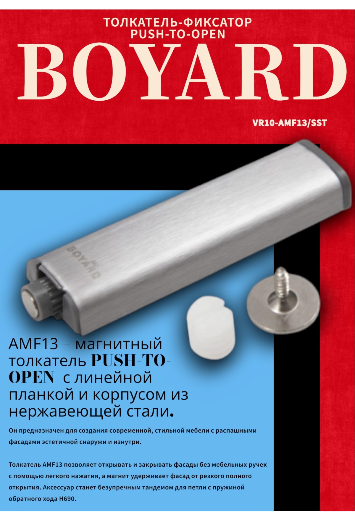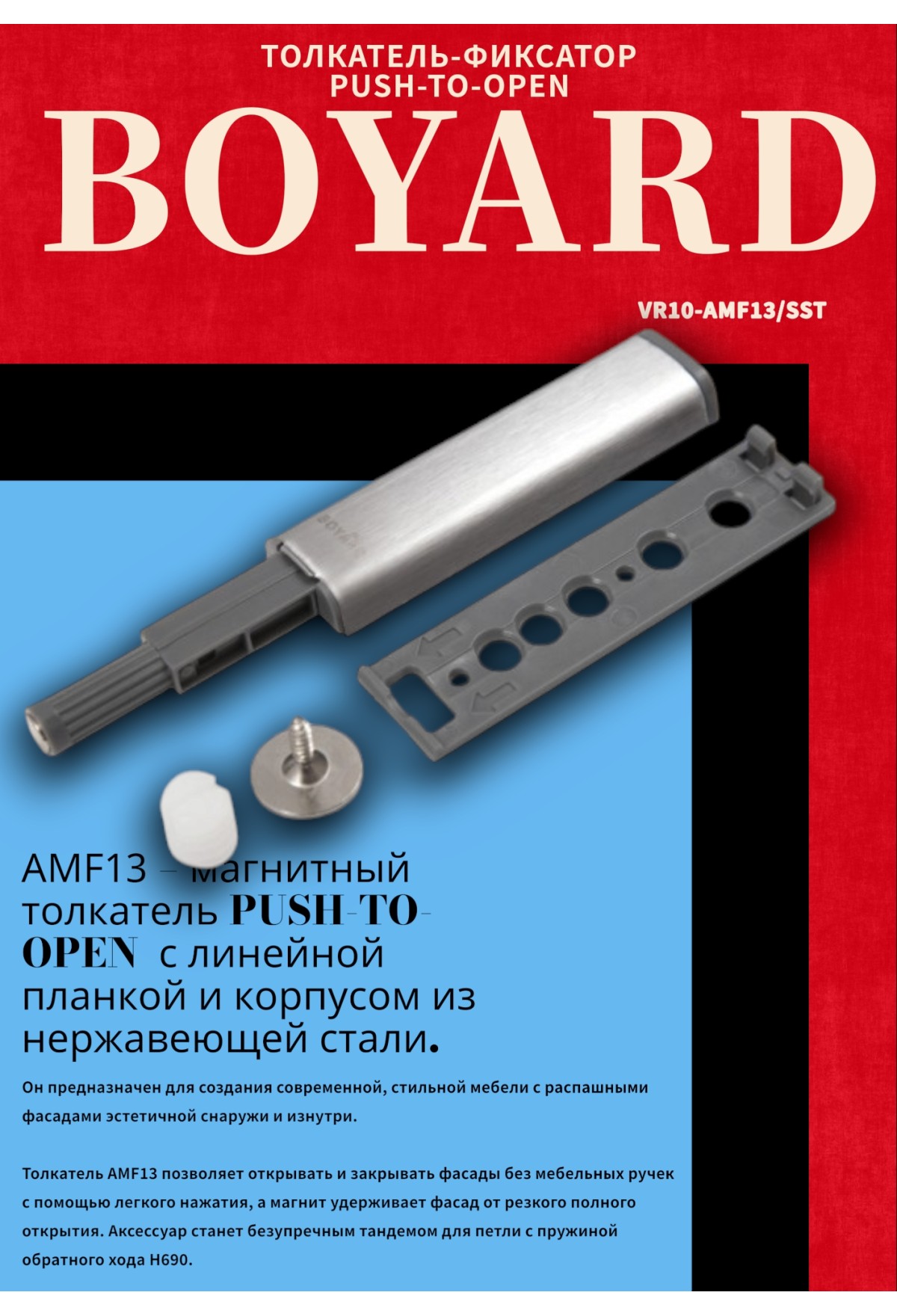 АМF13 – магнитный толкатель PUSH-TO-OPEN с линейной планкой и корпусом из нержавеющей стали. Он предназначен для создания современной, стильной мебели с распашными фасадами эстетичной снаружи и изнутри.