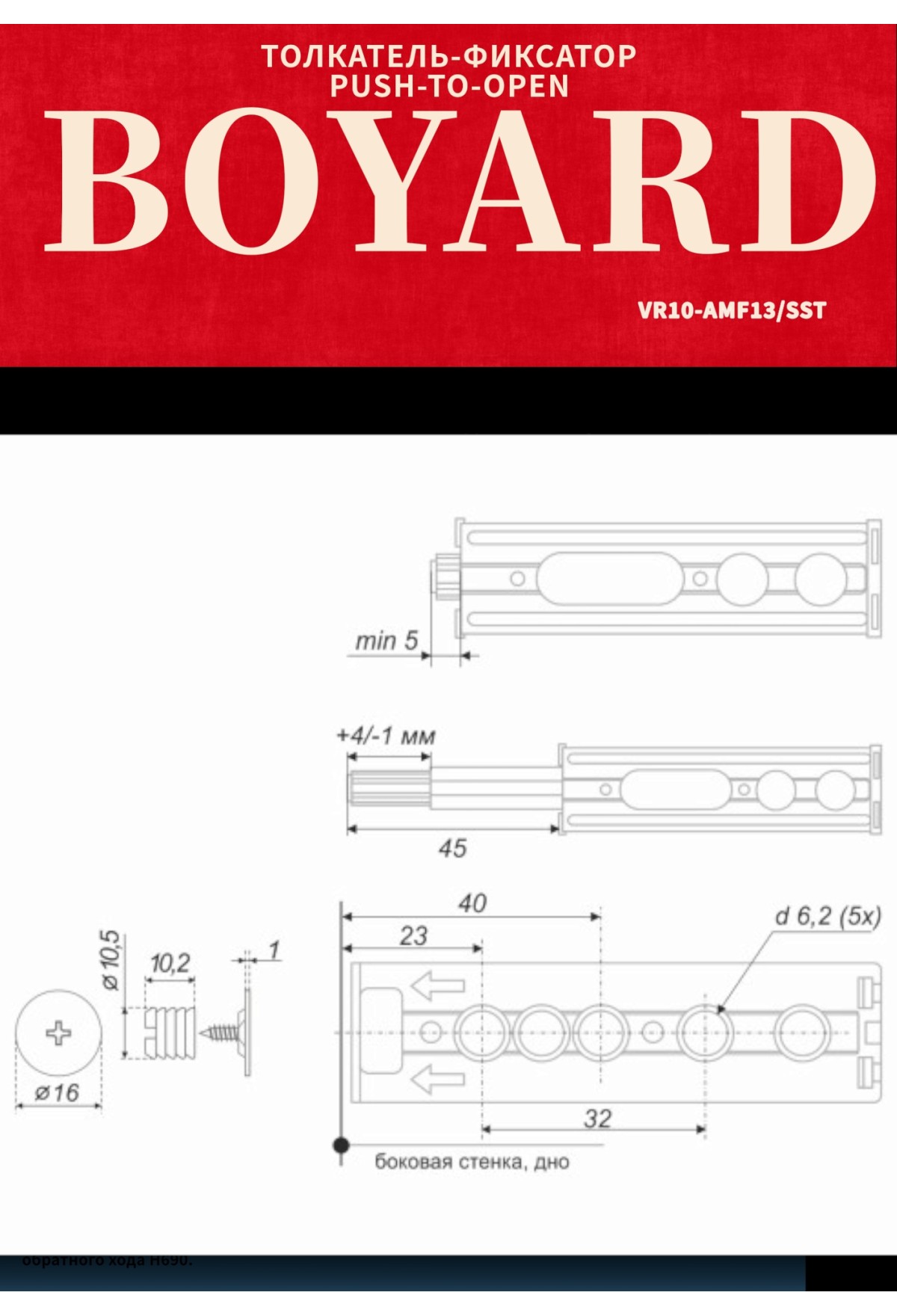 Толкатель АМF13 позволяет открывать и закрывать фасады без мебельных ручек с помощью легкого нажатия, а магнит удерживает фасад от резкого полного открытия. Аксессуар станет безупречным тандемом для петли с пружиной обратного хода Н690.