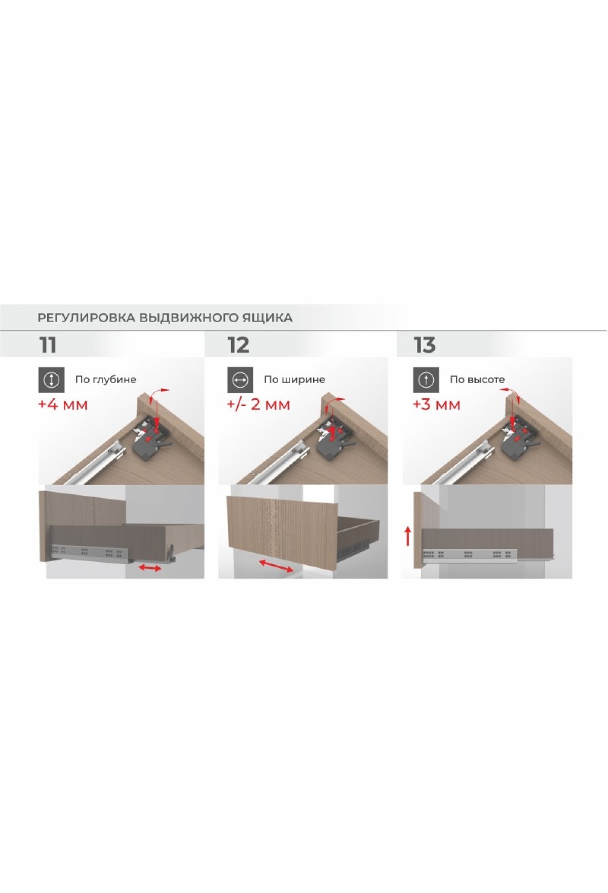 B-Slide DB9991 — направляющие скрытого монтажа полного выдвижения с 3D-регулировкой и синхронизацией. Реальная корректная и полноценная 3d-регулировка с помощью клипсы и подвижного заднего крючка позволит легко уточнить положение мебельного ящика или компенсировать возможные погрешности монтажа без применения доп. инструмента и без ухудшений параметров комфортного хода.
