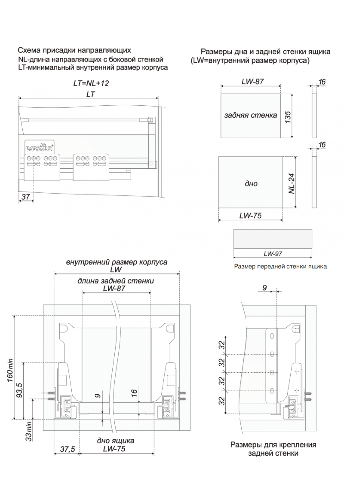 Тип конструкции направляющих | Системы выдвижения с двойными металлическими боковинами |