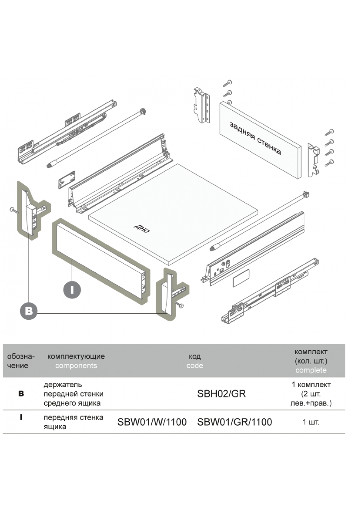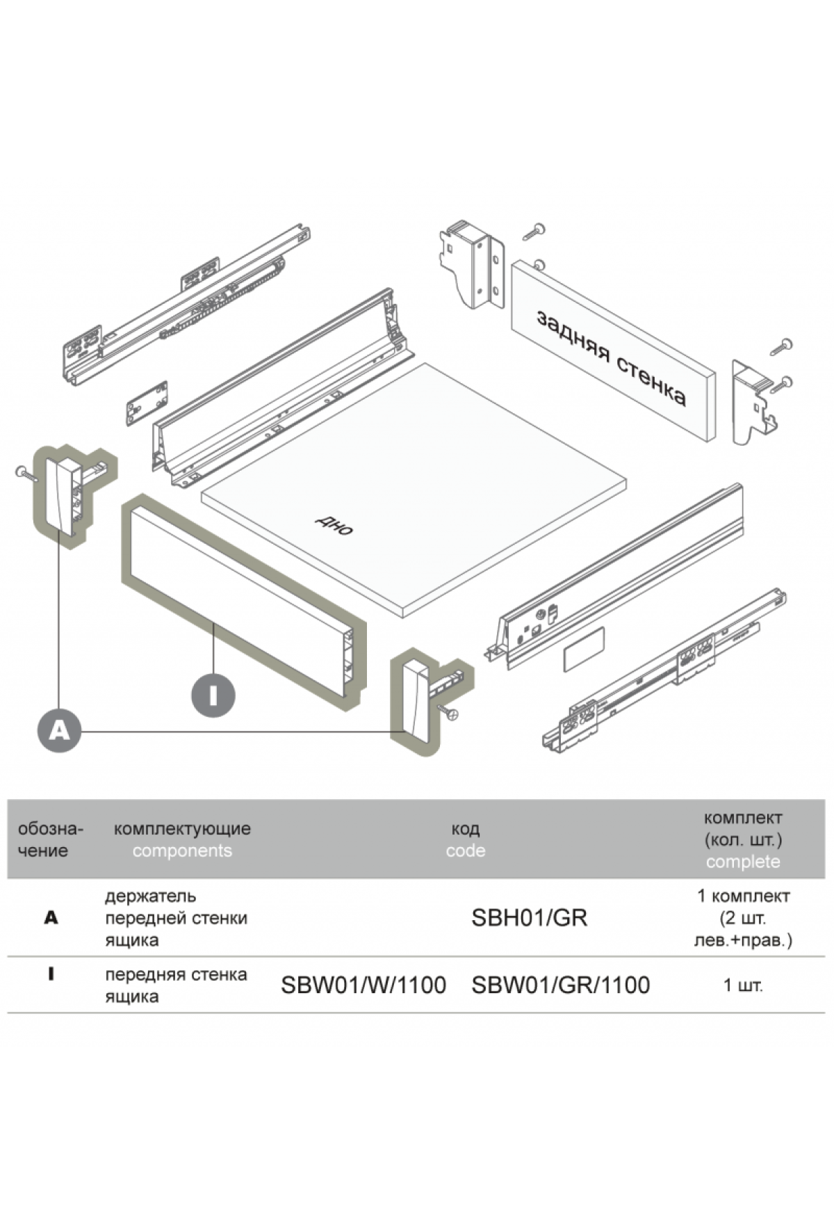 Технические характеристики Передняя стенка ящика SWIMBOX SBW01/GR/1100