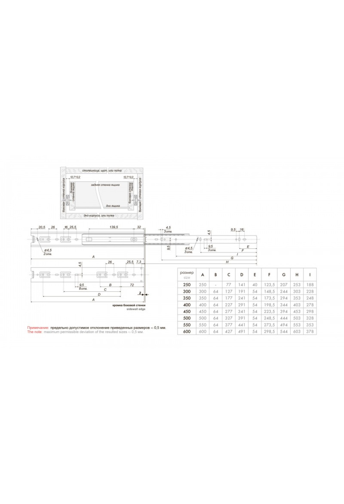 DB4501 — шариковые направляющие полного выдвижения без амортизации, выполненные по европейскому стандарту. Обладают современными характеристиками и обеспечивают стабильное выдвижение мебельных ящиков и плавный, равномерный ход. Модель надежна и долговечна – она обладает оптимальной грузоподъемностью до 25 кг (зависит от монтажной длины) и гарантирует бесперебойную работу механизма на протяжении 30 000 циклов открывания/закрывания.