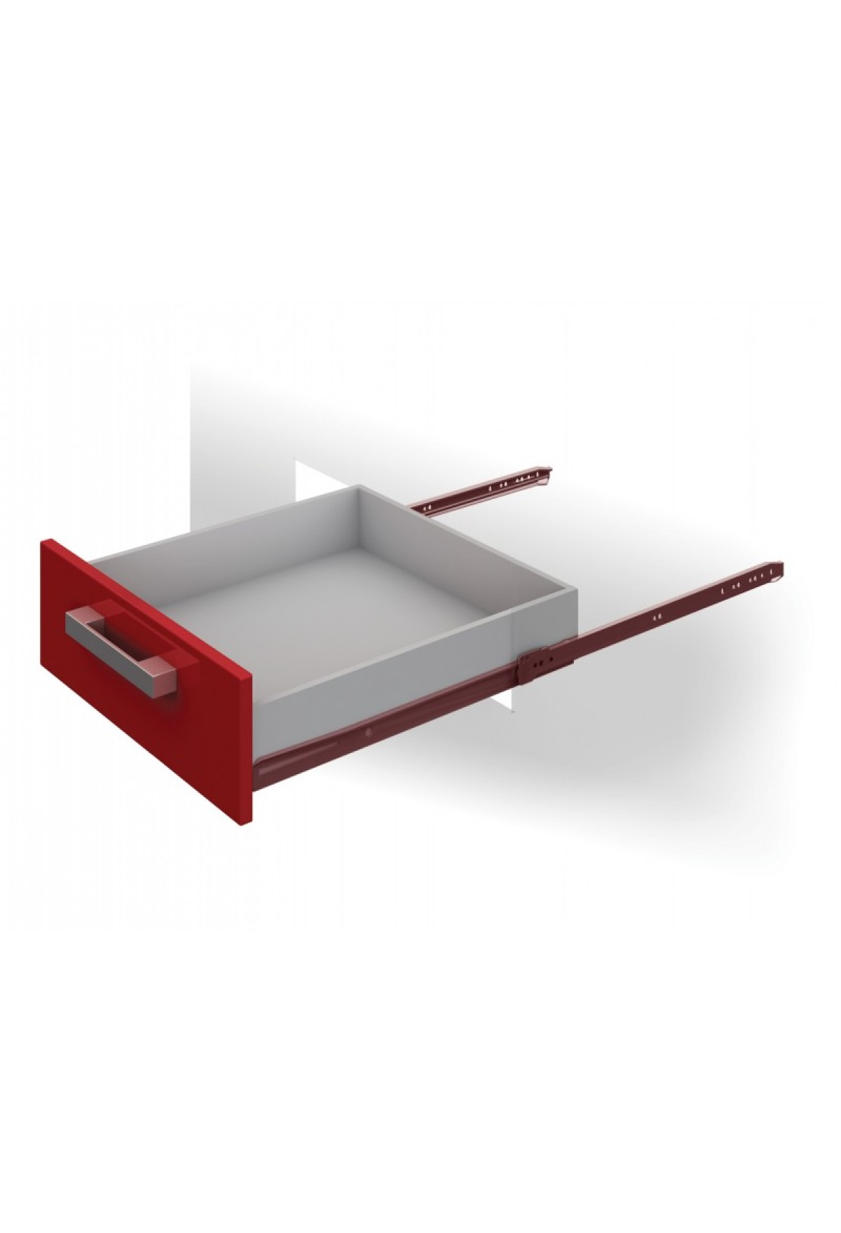 Направляющие роликовые для мебельных ящиков. Выдвижной механизм одинарный, неполного выдвижения, с самозатягиванием, двойным остановом и защитой от выкатывания. Форма профиля имеет дополнительное ребро жесткости. Ролик цельный, материал ролика POM.