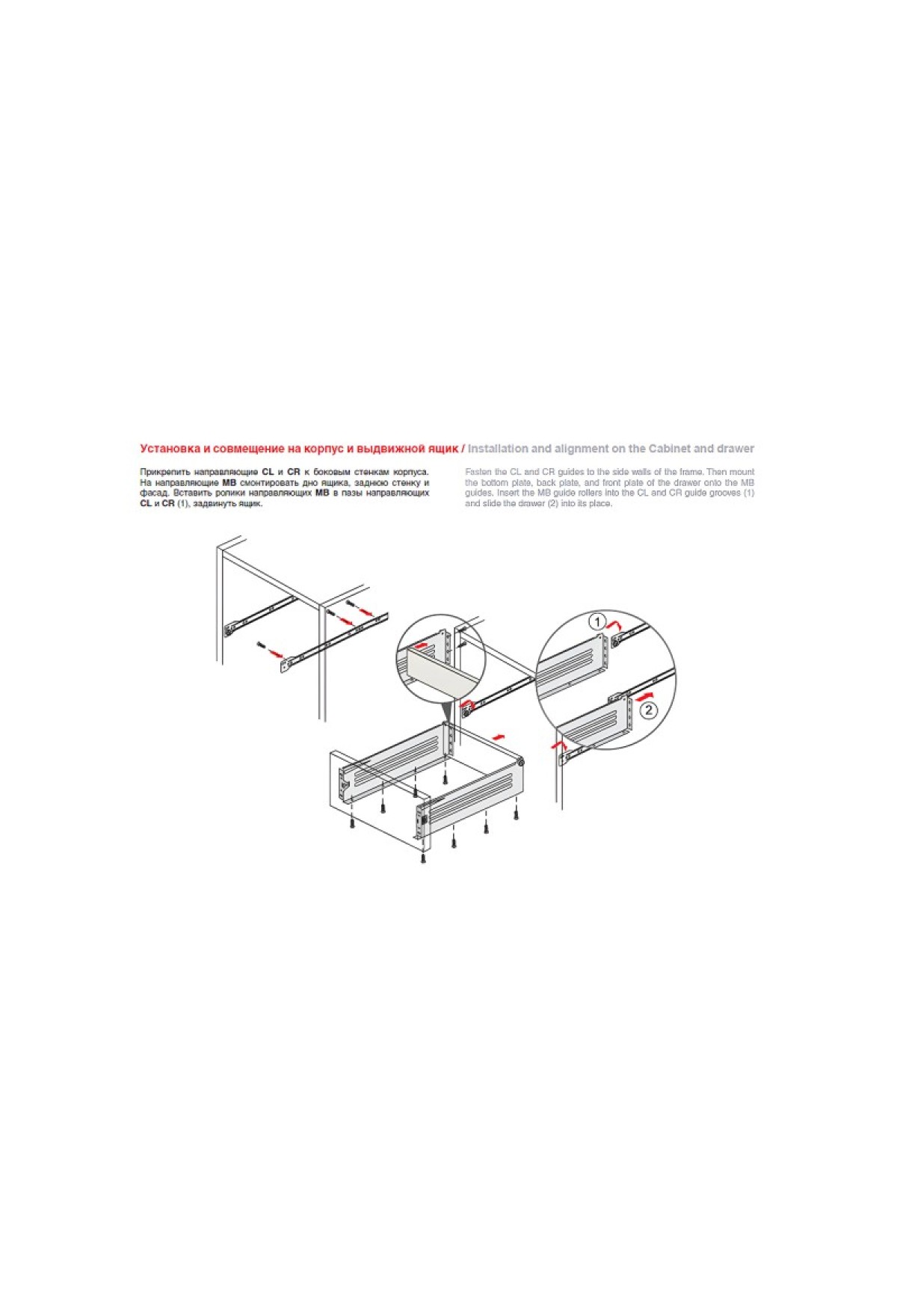 MB11801 — направляющие с одностенными металлическими боковинами высотой 118 мм для изготовления выдвижных ящиков, с регулировкой фасада по высоте (+/-2 мм), с роликовой направляющей неполного выдвижения, с самозатягиванием, двойным остановом и защитой от выкатывания.