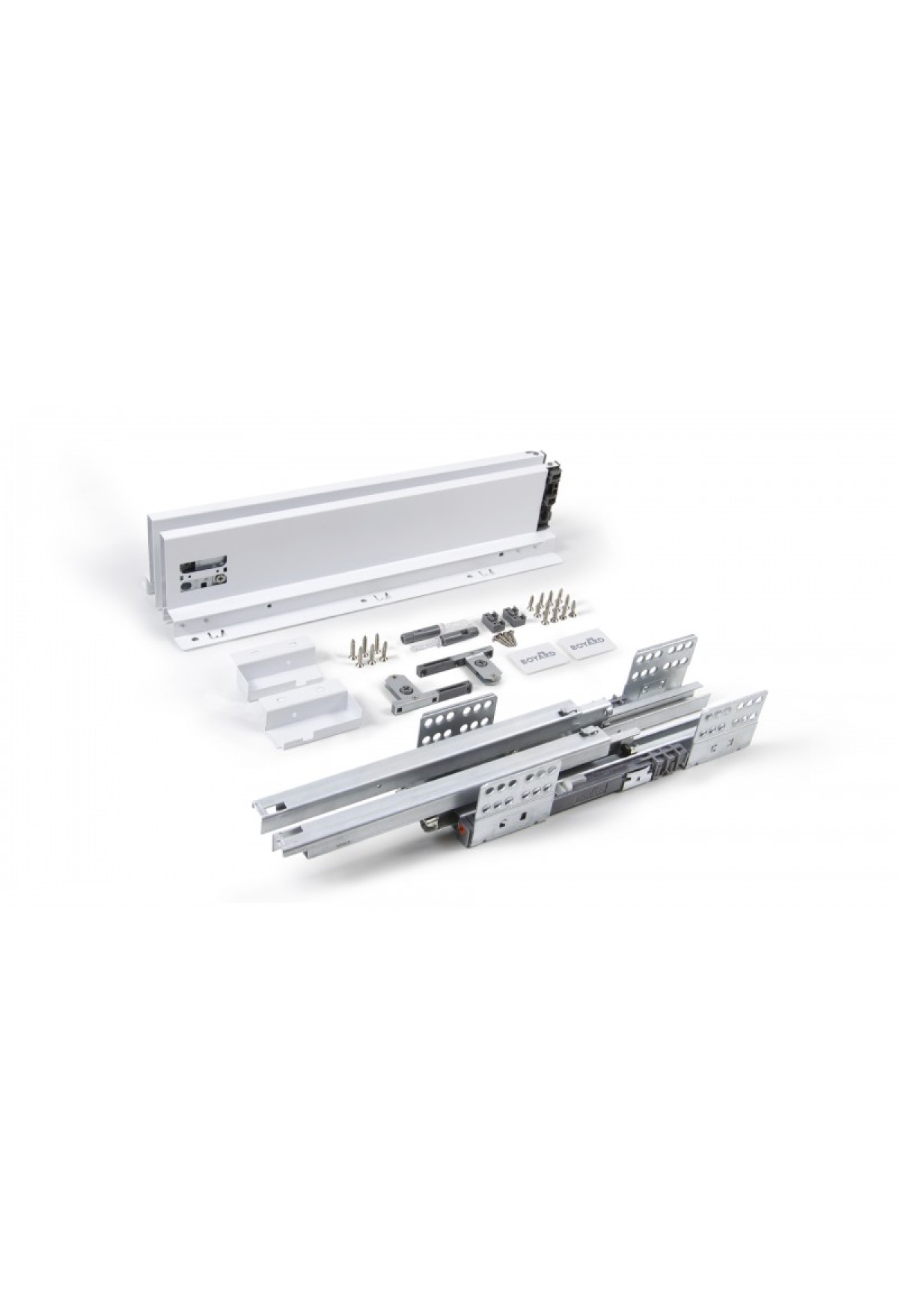 Комплект СТАРТ PUSH SB28 позволяет создавать выдвижные мебельные ящики любой желаемой высоты с помощью дополнительных рейлингов круглой или прямоугольной формы и держателей к ним, которые приобретаются отдельно.