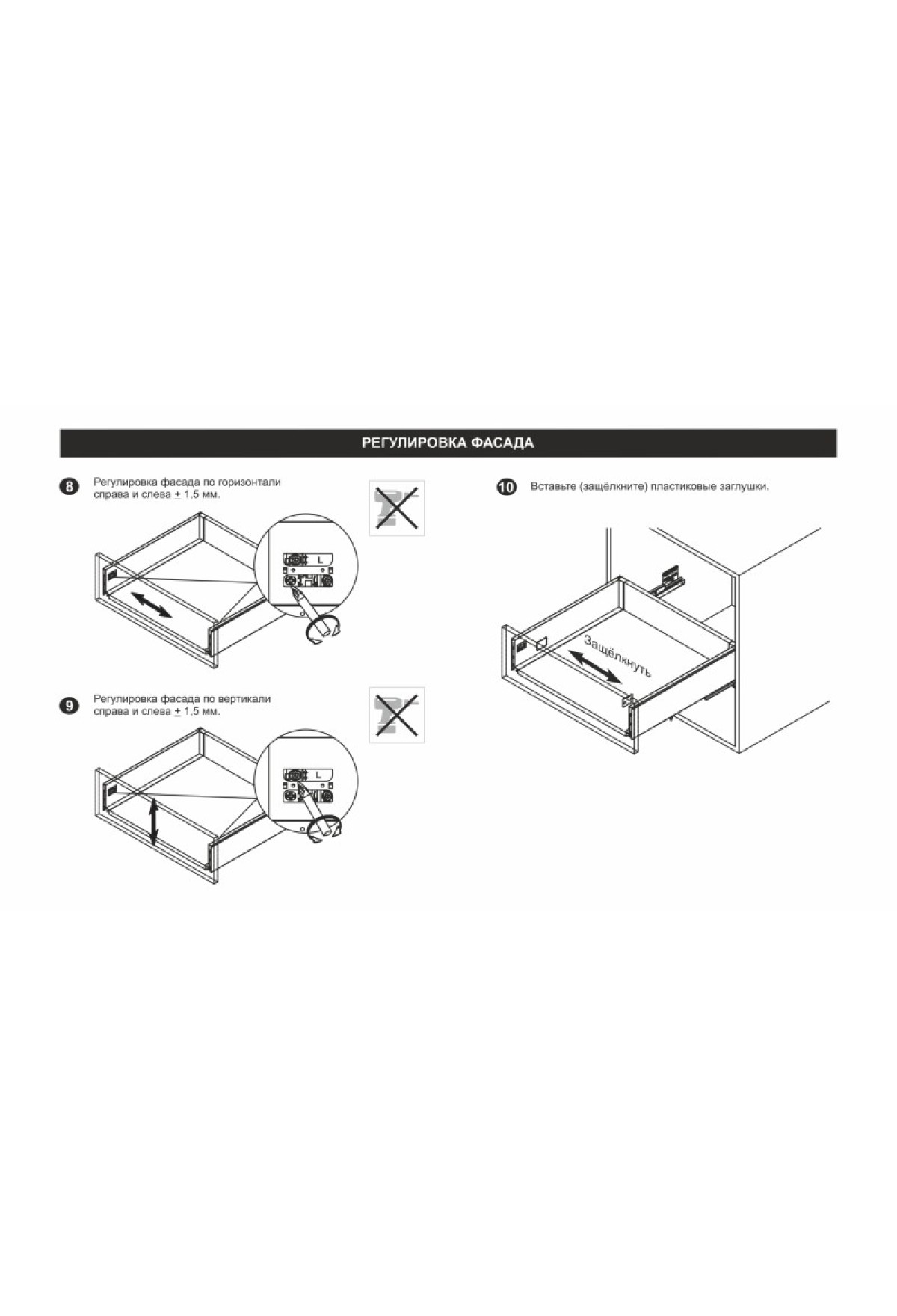 - Фиксатор фасада с саморезами (левый и правый)