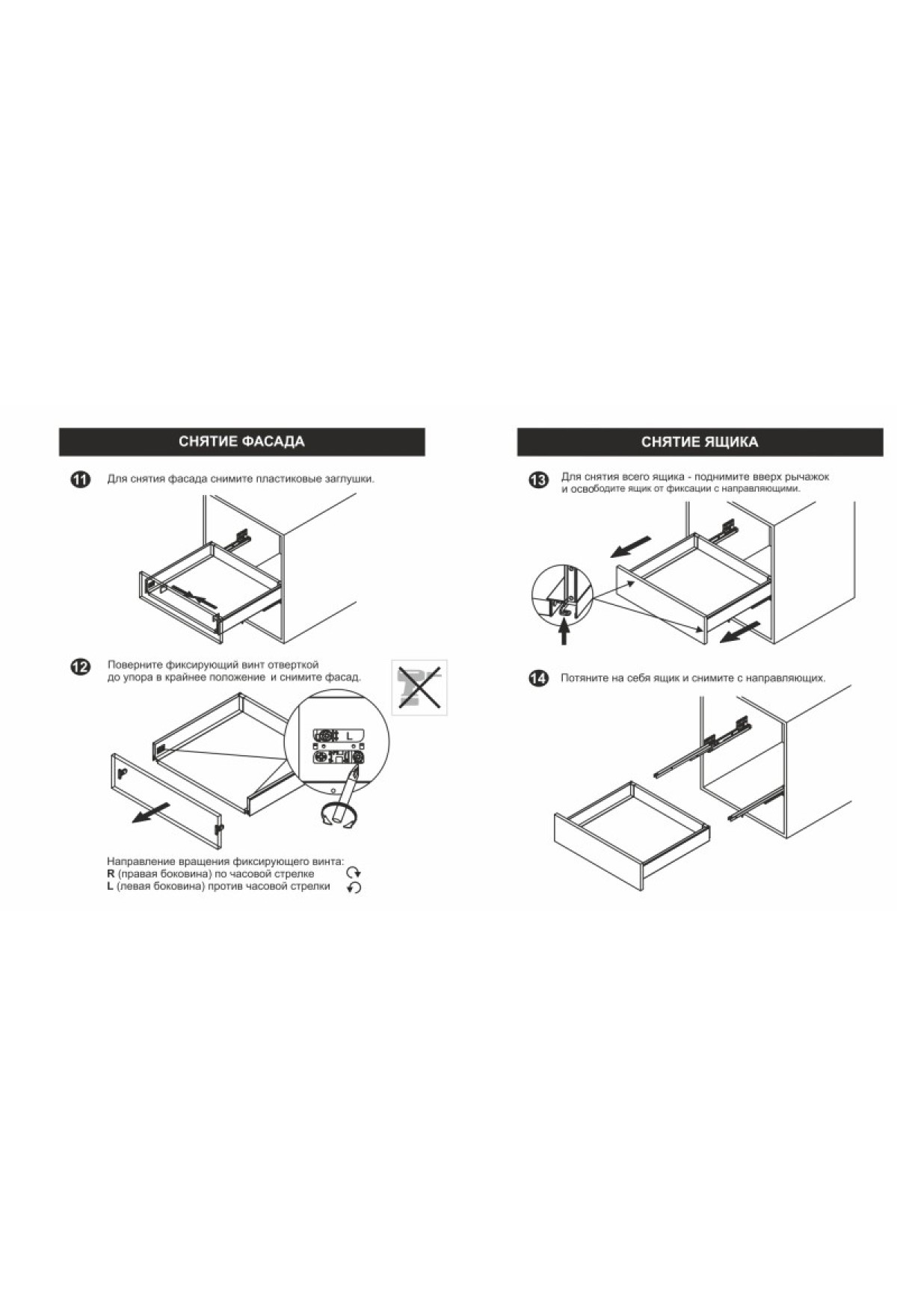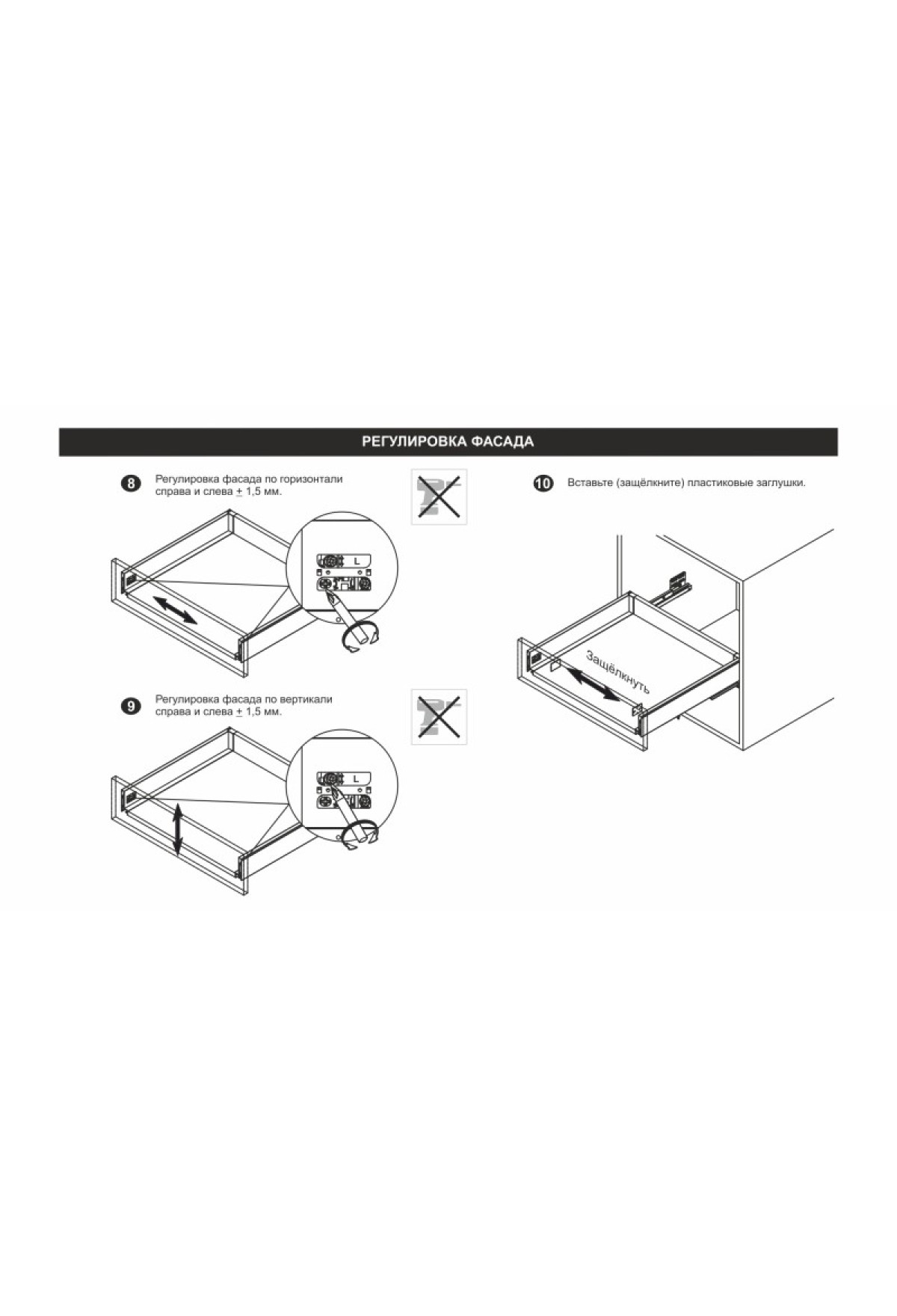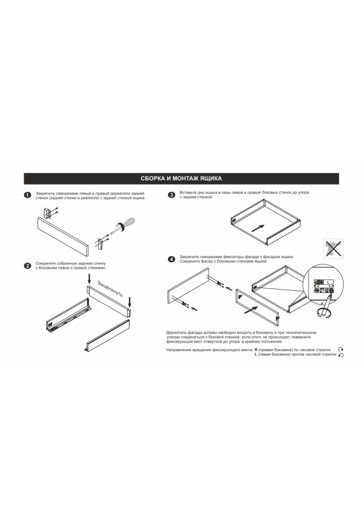 - Фиксатор фасада с саморезами (левый и правый)