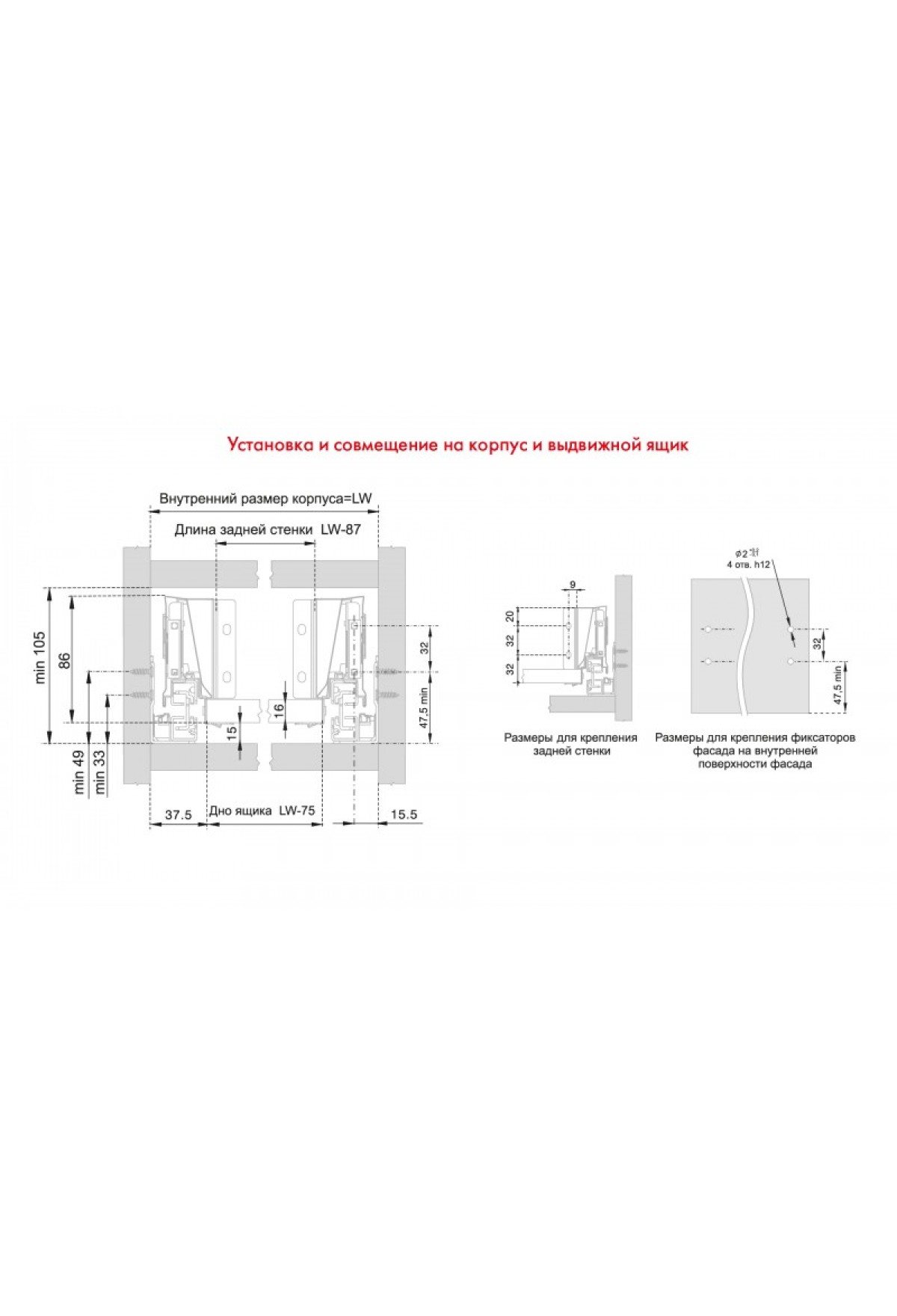 | Тип конструкции направляющих | Системы выдвижения с двойными металлическими боковинами |