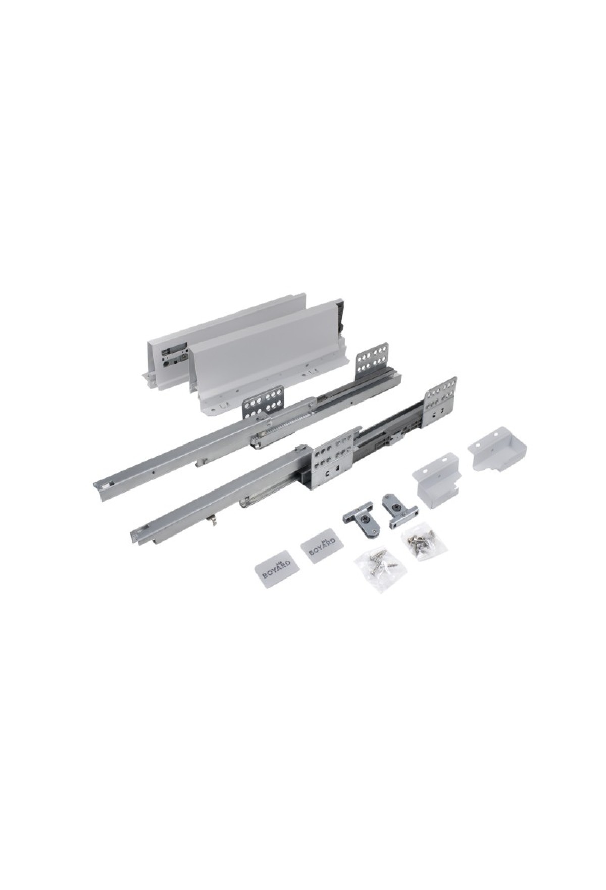 СТАРТ SOFT SB08 — комплект систем выдвижения для сборки выдвижного мебельного ящика с традиционными боковинами стандартной высоты.