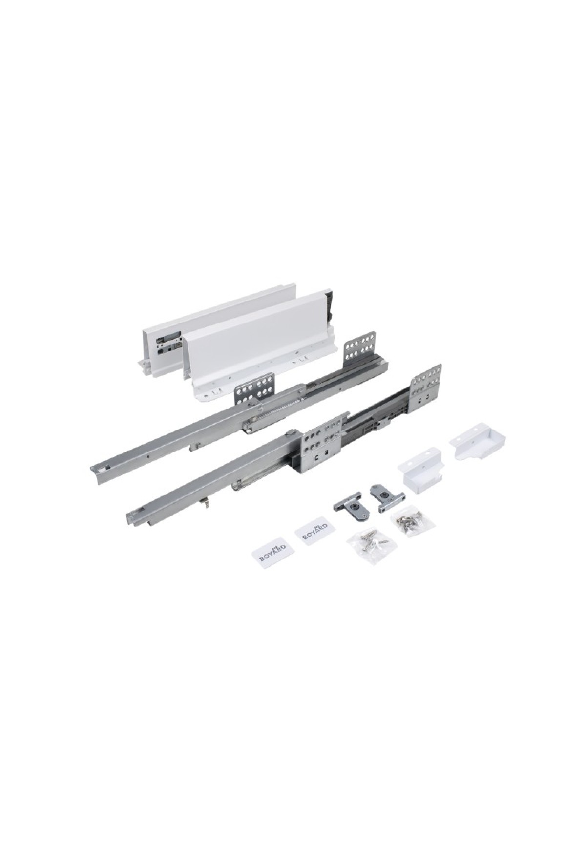 СТАРТ SOFT SB08 — комплект систем выдвижения для сборки выдвижного мебельного ящика с традиционными боковинами стандартной высоты.